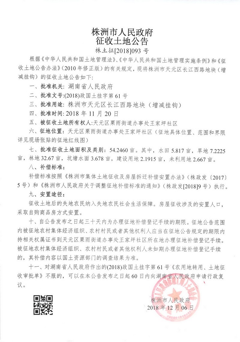 征收土地公告--株洲市天元区长江西路地块