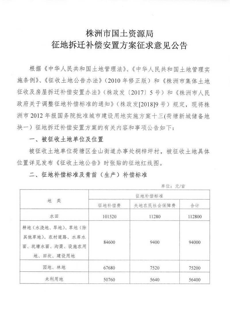 征地拆迁补偿安置方案征求意见公告--荷塘新城储备地块一