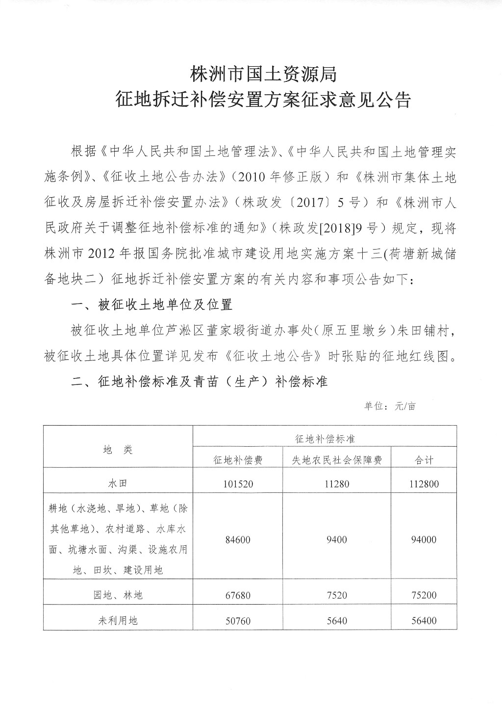 征地拆迁补偿安置方案征求意见公告--荷塘新城储备地块二