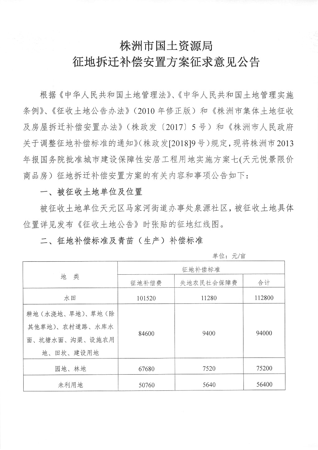 征地拆迁补偿安置方案征求意见公告--天元悦景限价商品房项目