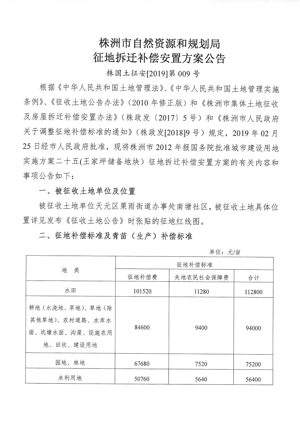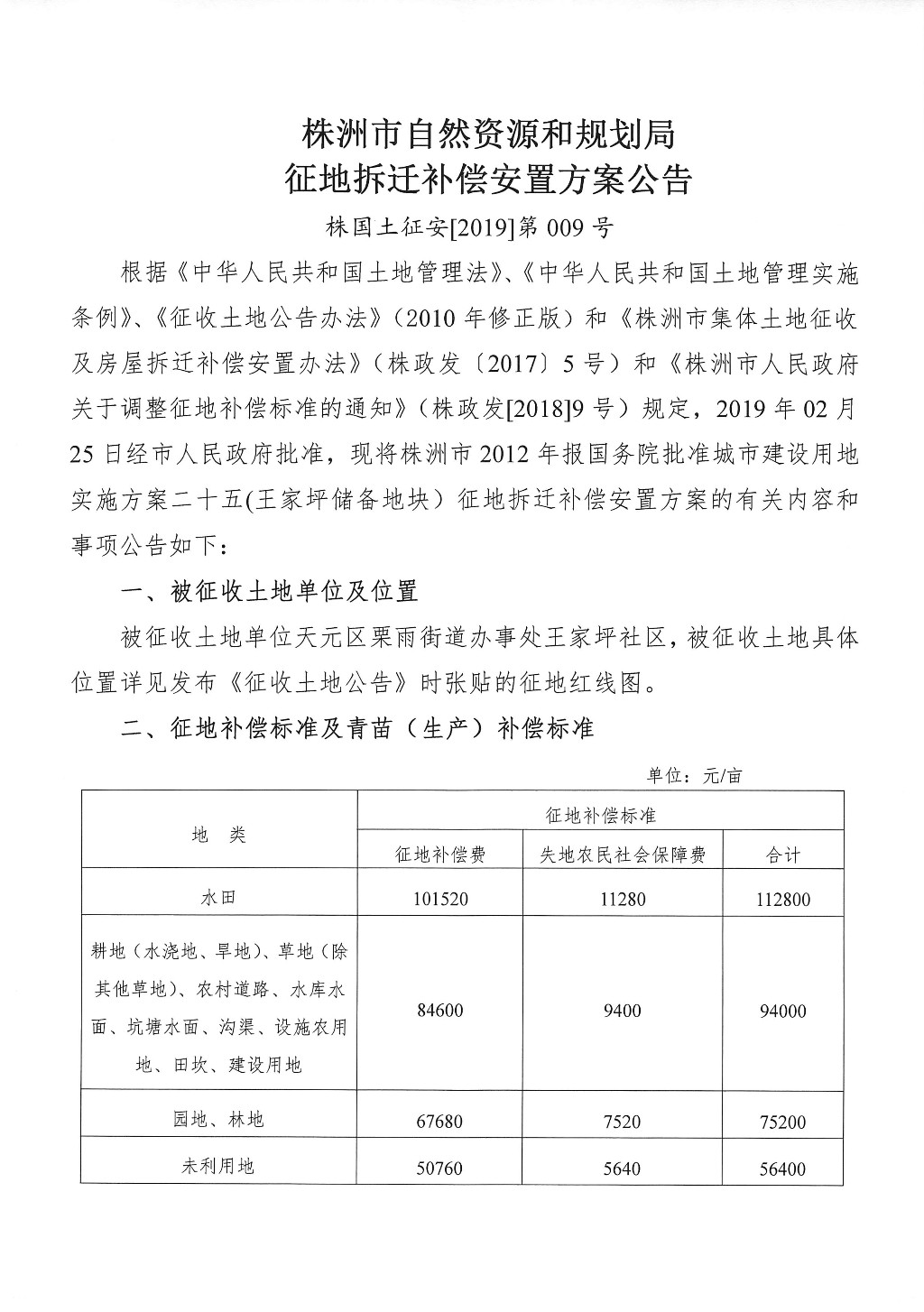 征地拆迁补偿安置方案公告--王家坪储备地块