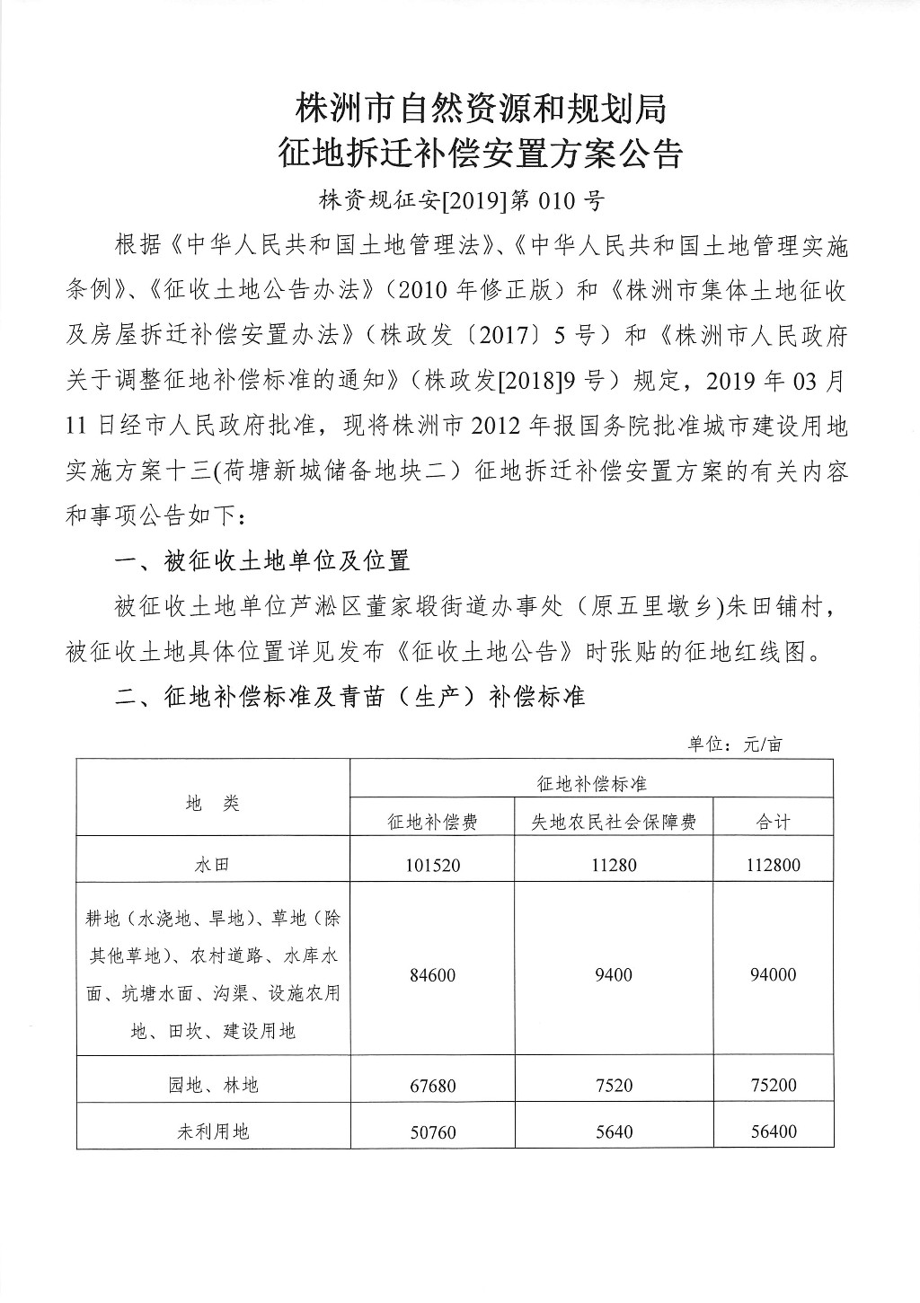 征地拆迁补偿安置方案公告--荷塘新城储备地块二