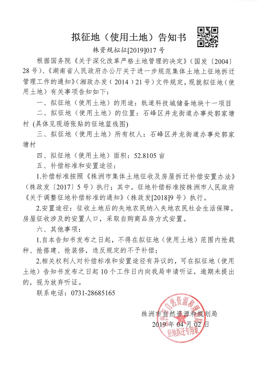 拟征地(使用土地)告知书--轨道科技城储备地块十一项目