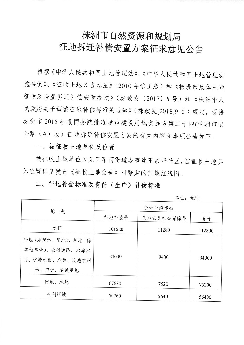 征地拆迁补偿阿志方案征求意见公告--株洲市栗合路(A)段项目