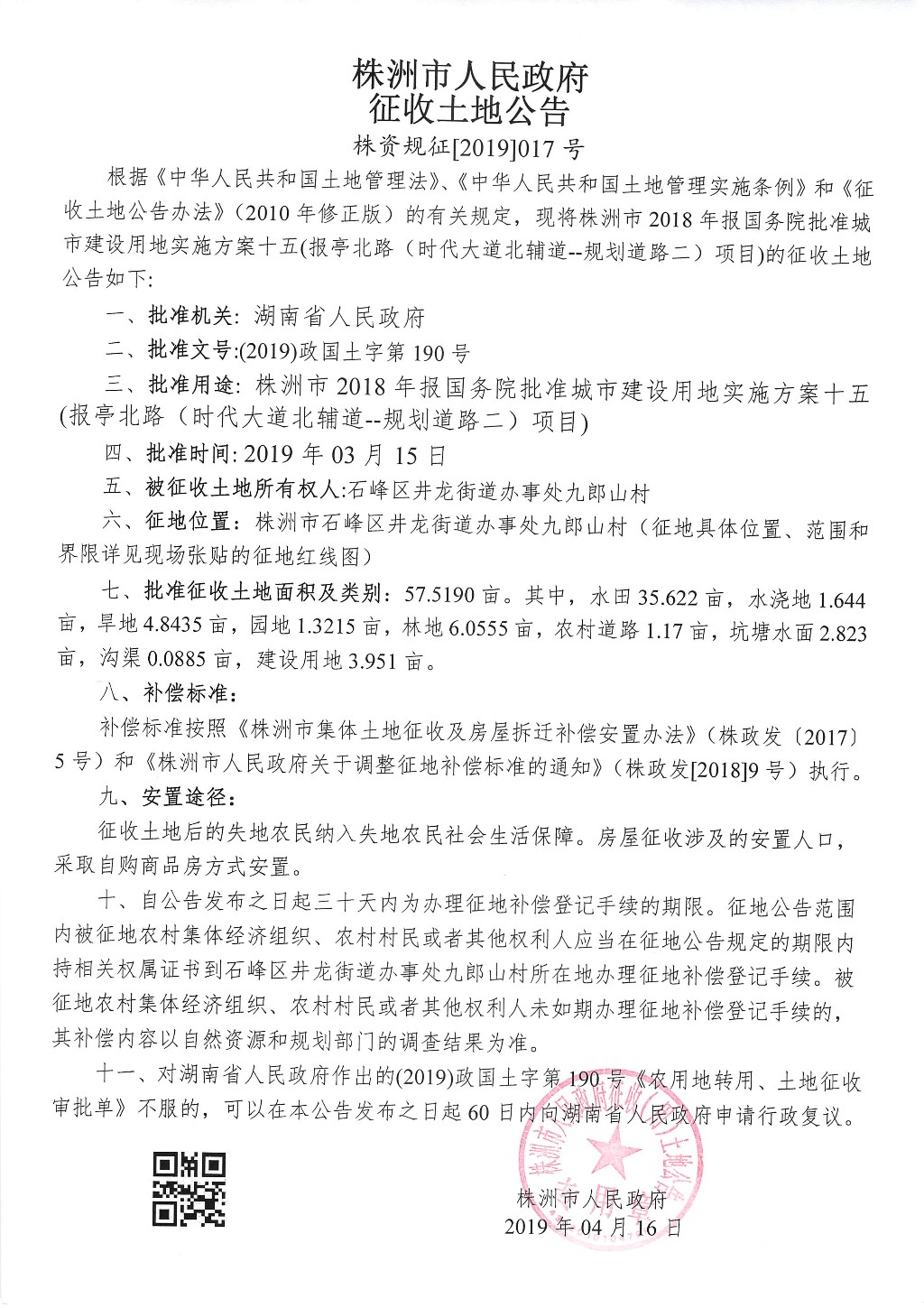 征收土地公告--报亭北路(时代大道北辅道--规划道路二)项目