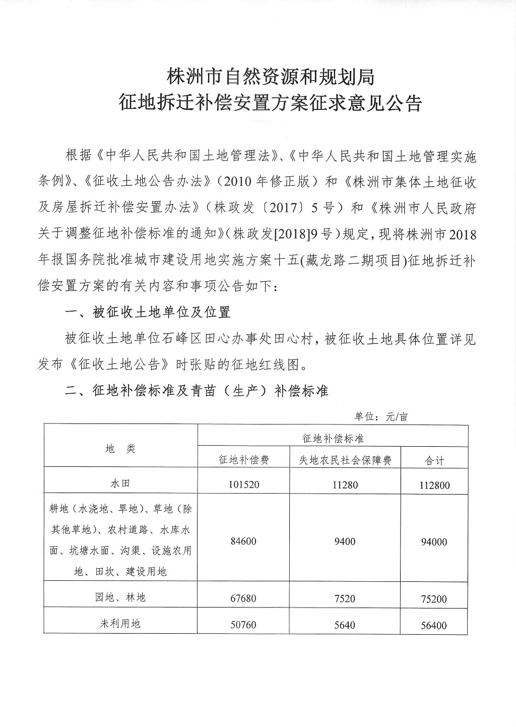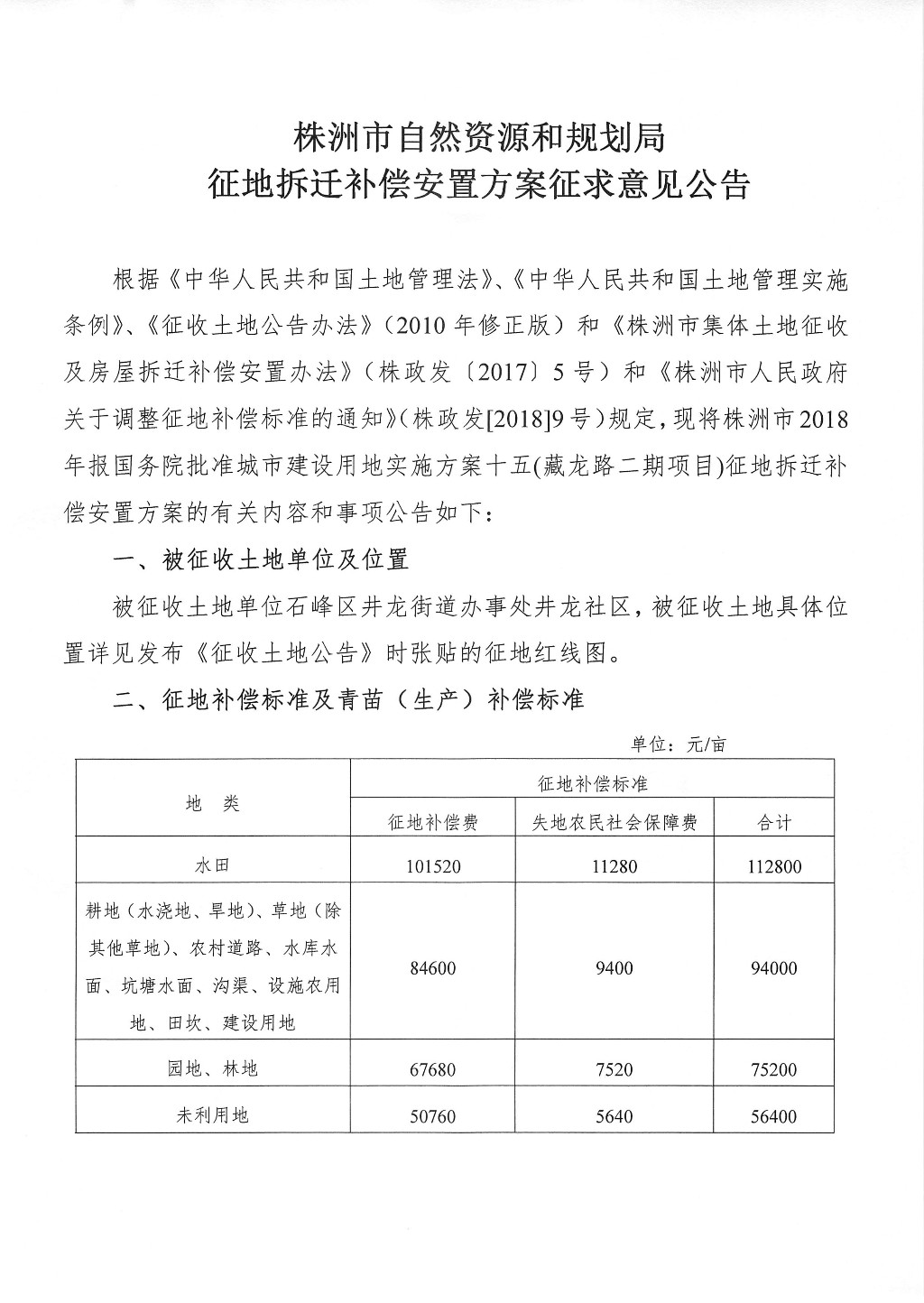 征地拆迁补偿安置方案征求意见公告--藏龙路二期