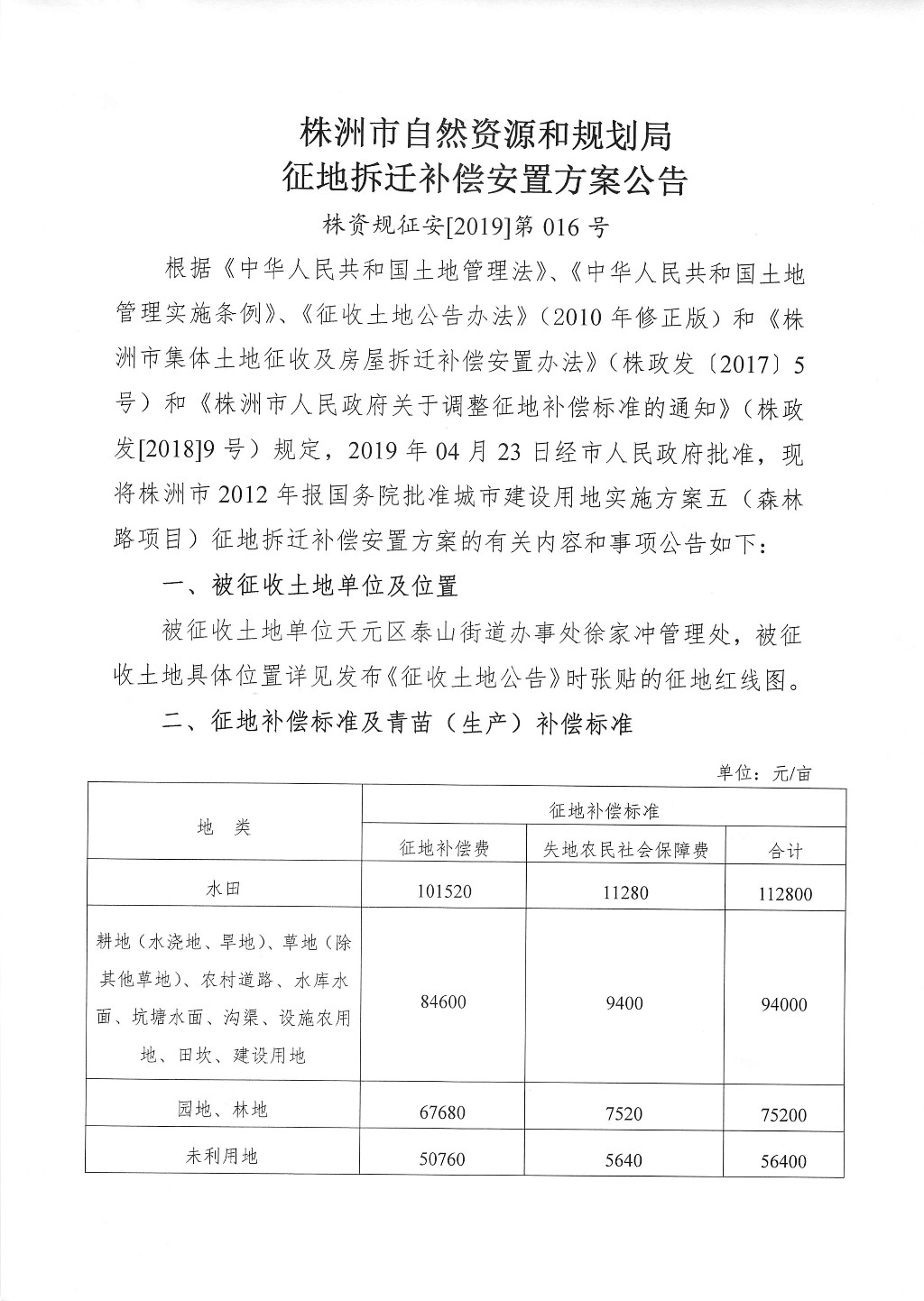 征地拆迁补偿安置方案公告--森林路项目