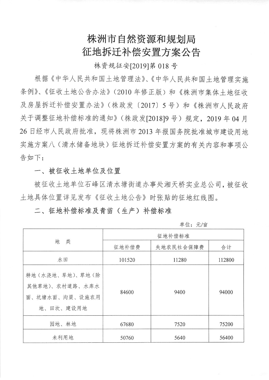 征地拆迁补偿安置方案公告--清水储备地块