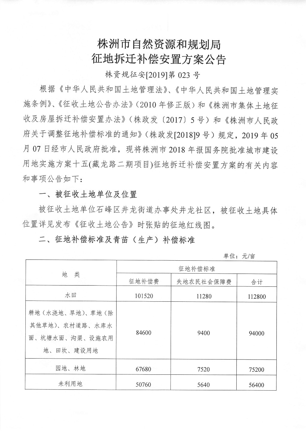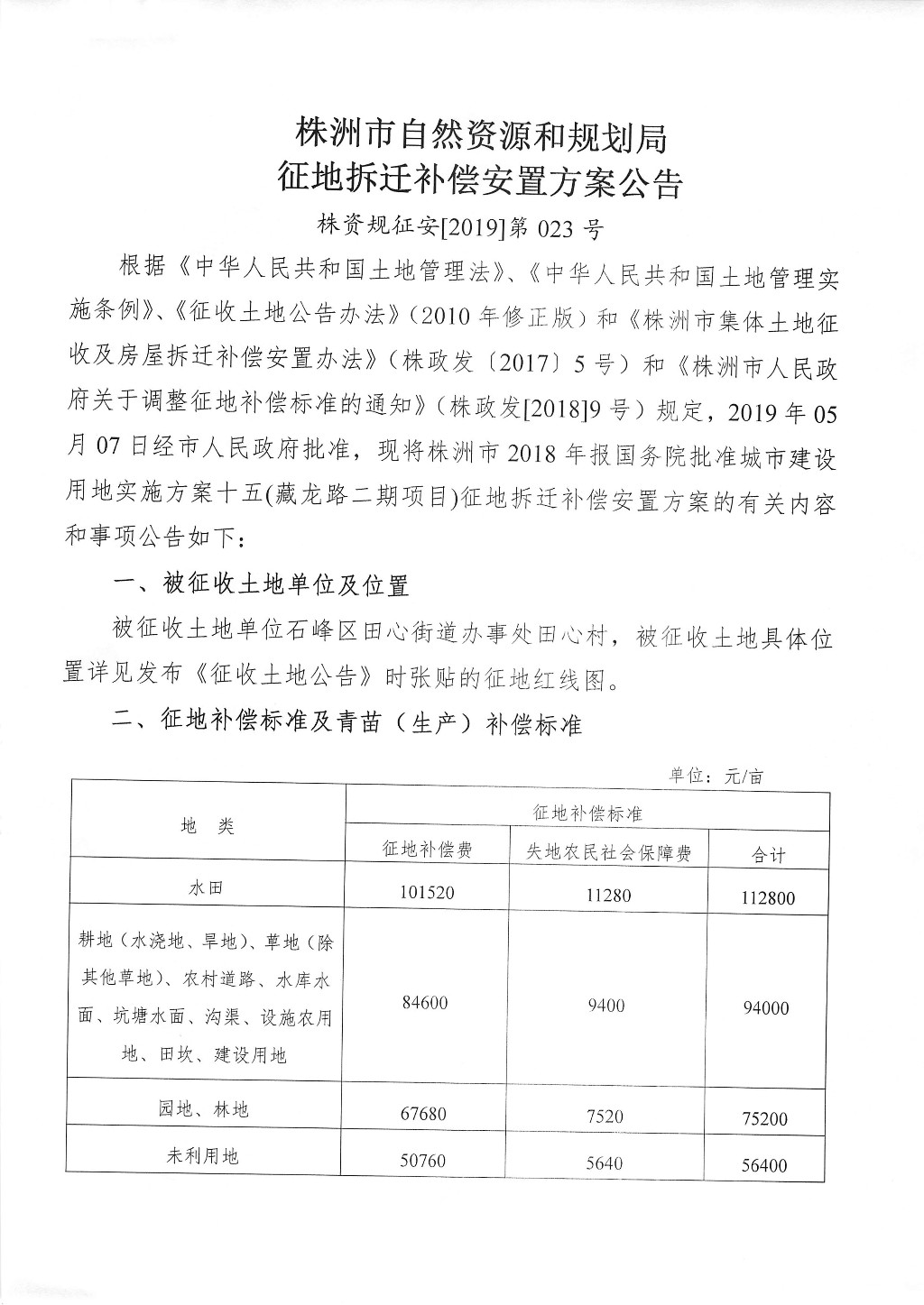 征地拆迁补偿安置方案公告--藏龙路二期项目