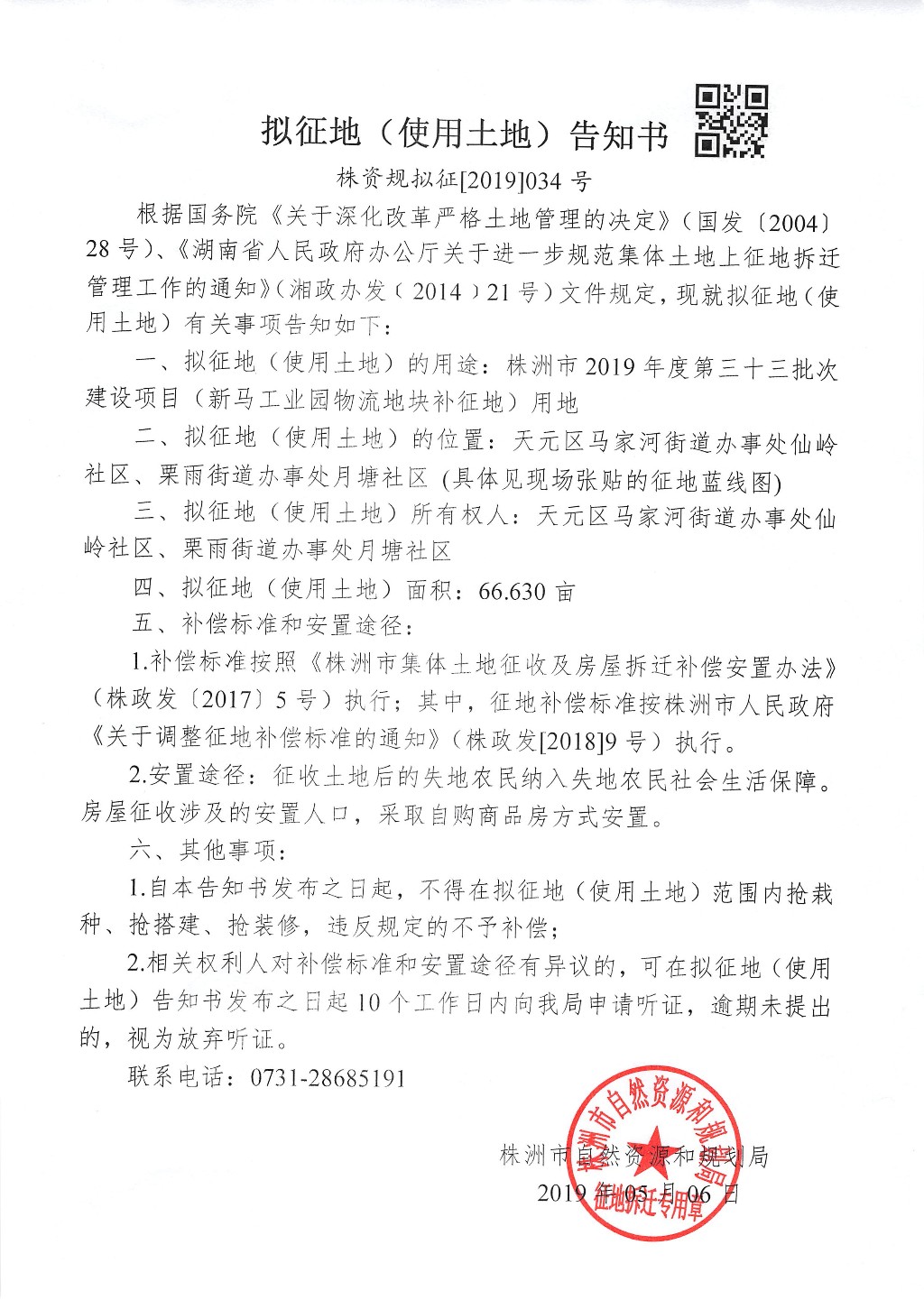 拟征地(使用土地)告知书--新马工业园物流地块补征地