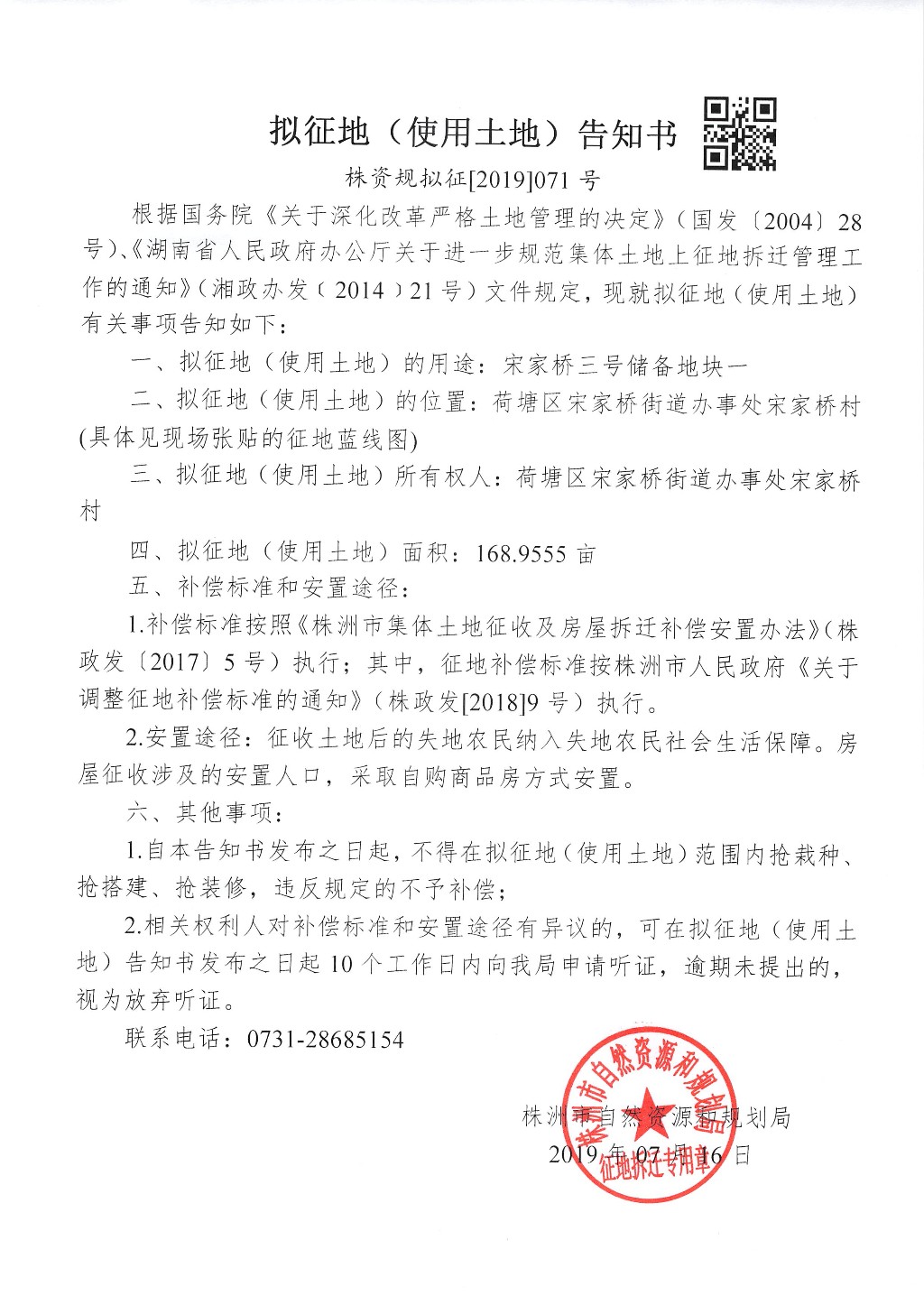 拟征地(使用土地)告知书--宋家桥三号储备地块一