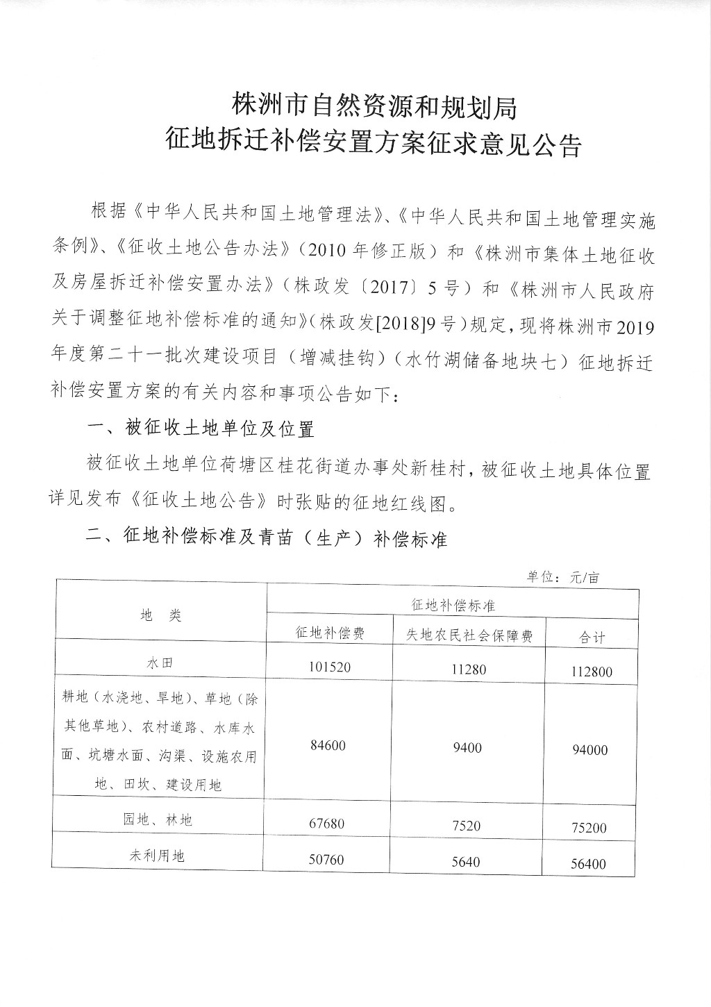征地拆迁补偿安置方案征求意见公告--水竹湖储备地块七
