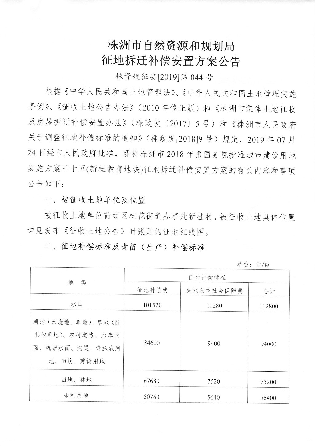 征地拆迁补偿安置方案公告--新桂教育地块