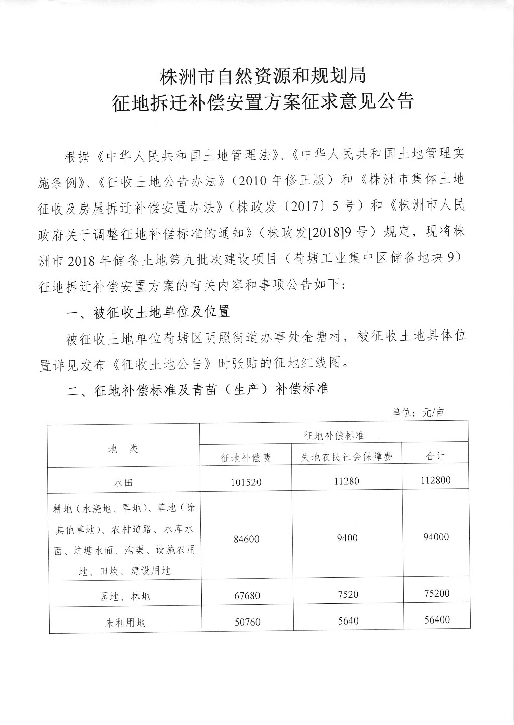 征地拆迁补偿安置方案意见公告--荷塘工业集中区储备地块9