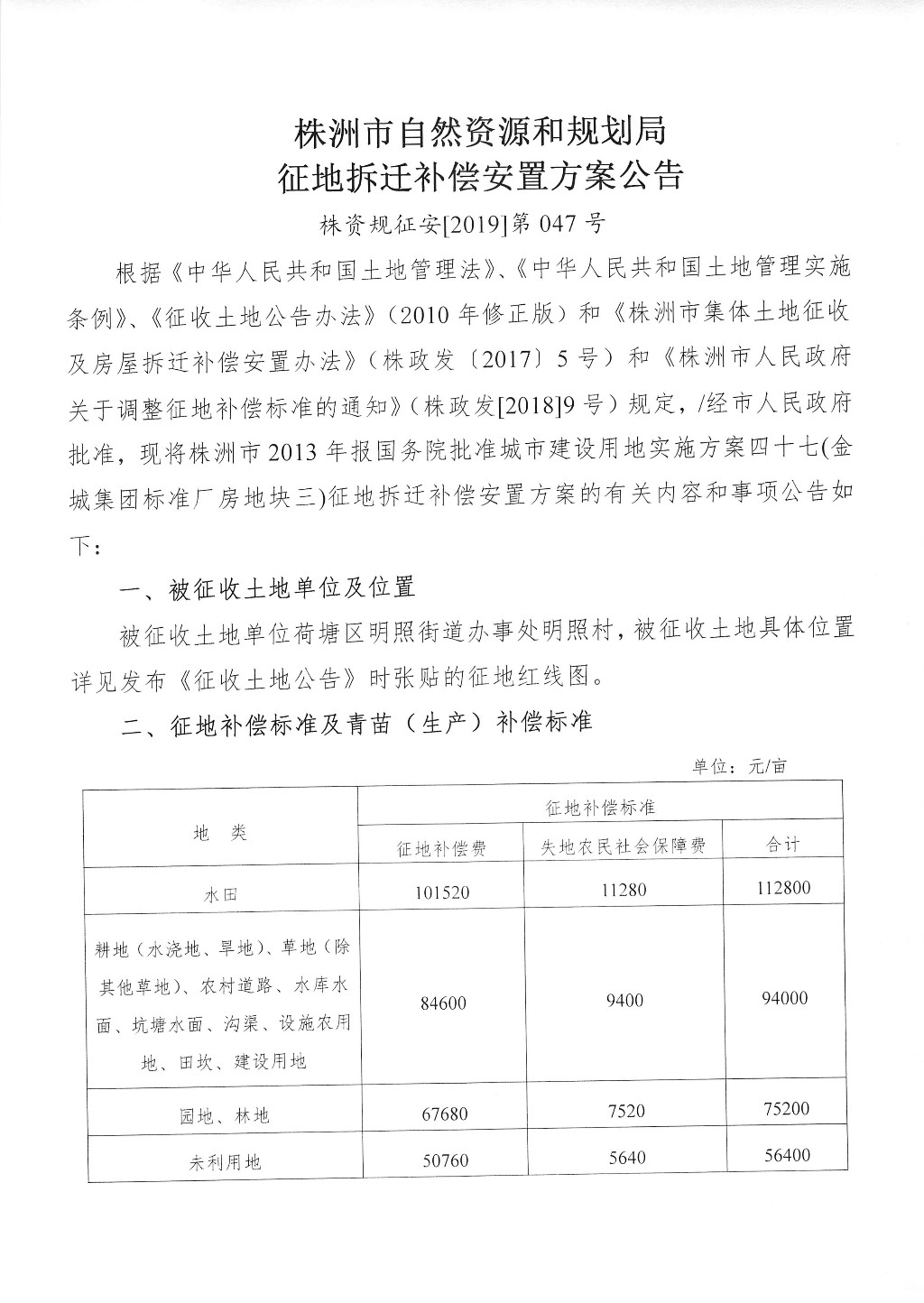 征地拆迁补偿安置方案公告--金城集团标准厂房地块三