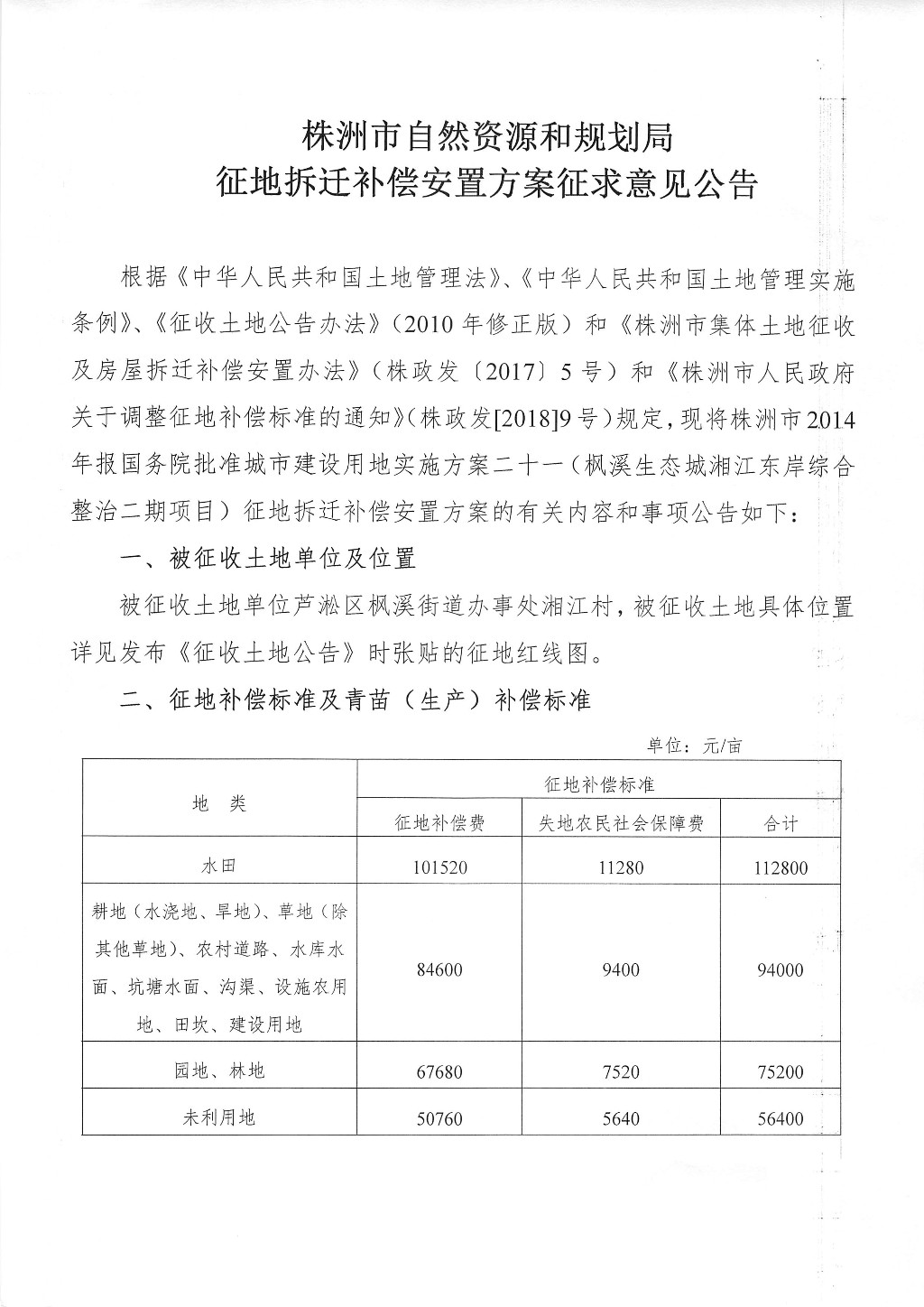 征地拆迁补偿安置方案征求意见公告--枫溪生态城湘江东岸综合整治二期项目
