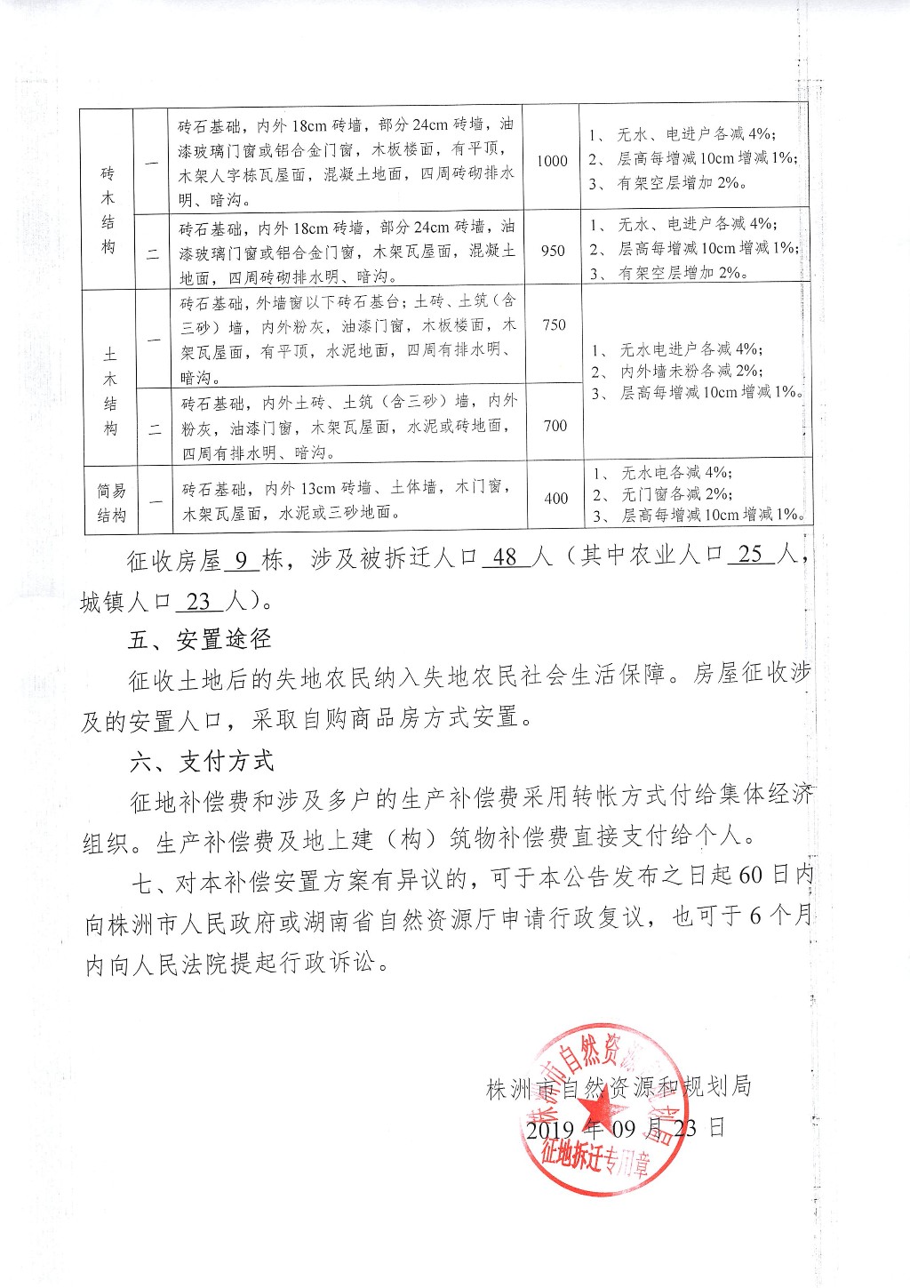 征地拆迁补偿安置方案公告--株洲市九方路(四兴路至田心大道)项目
