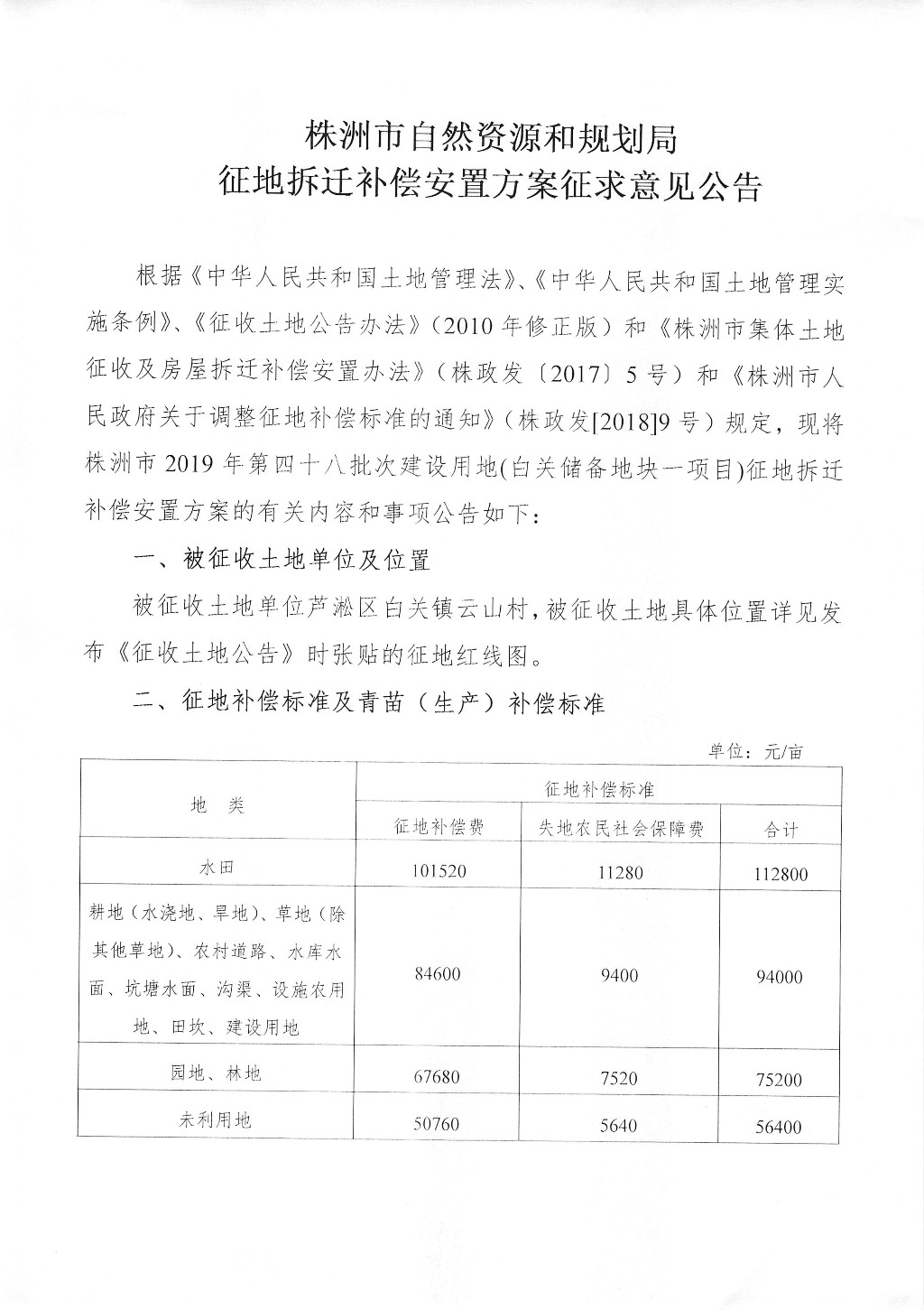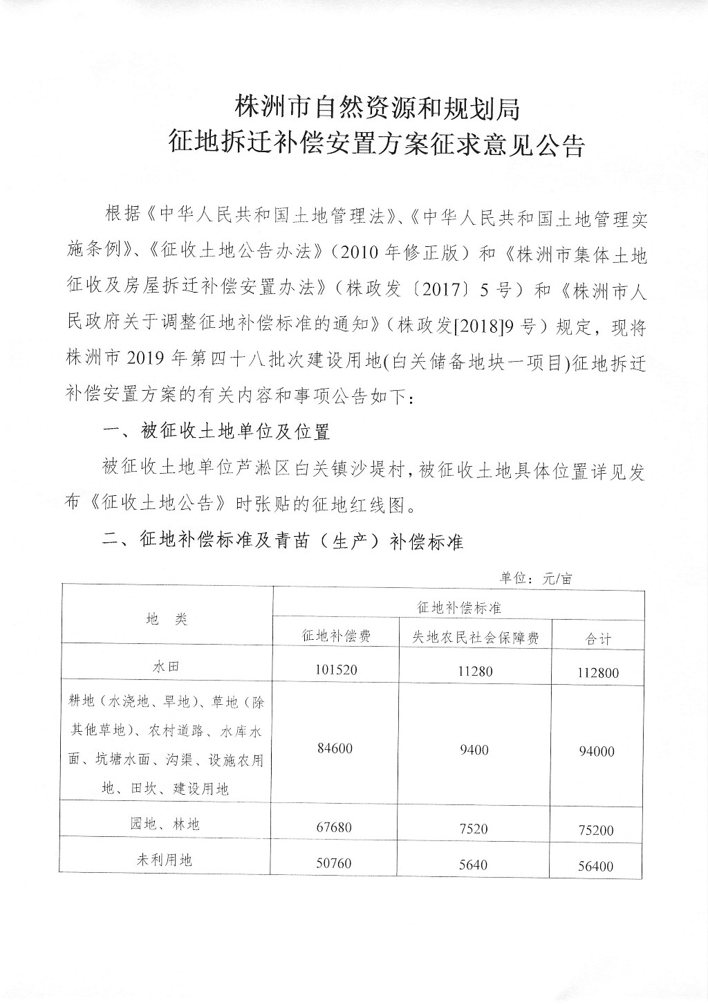 征地拆迁补偿安置方案征求意见公告--白关储备地块一项目