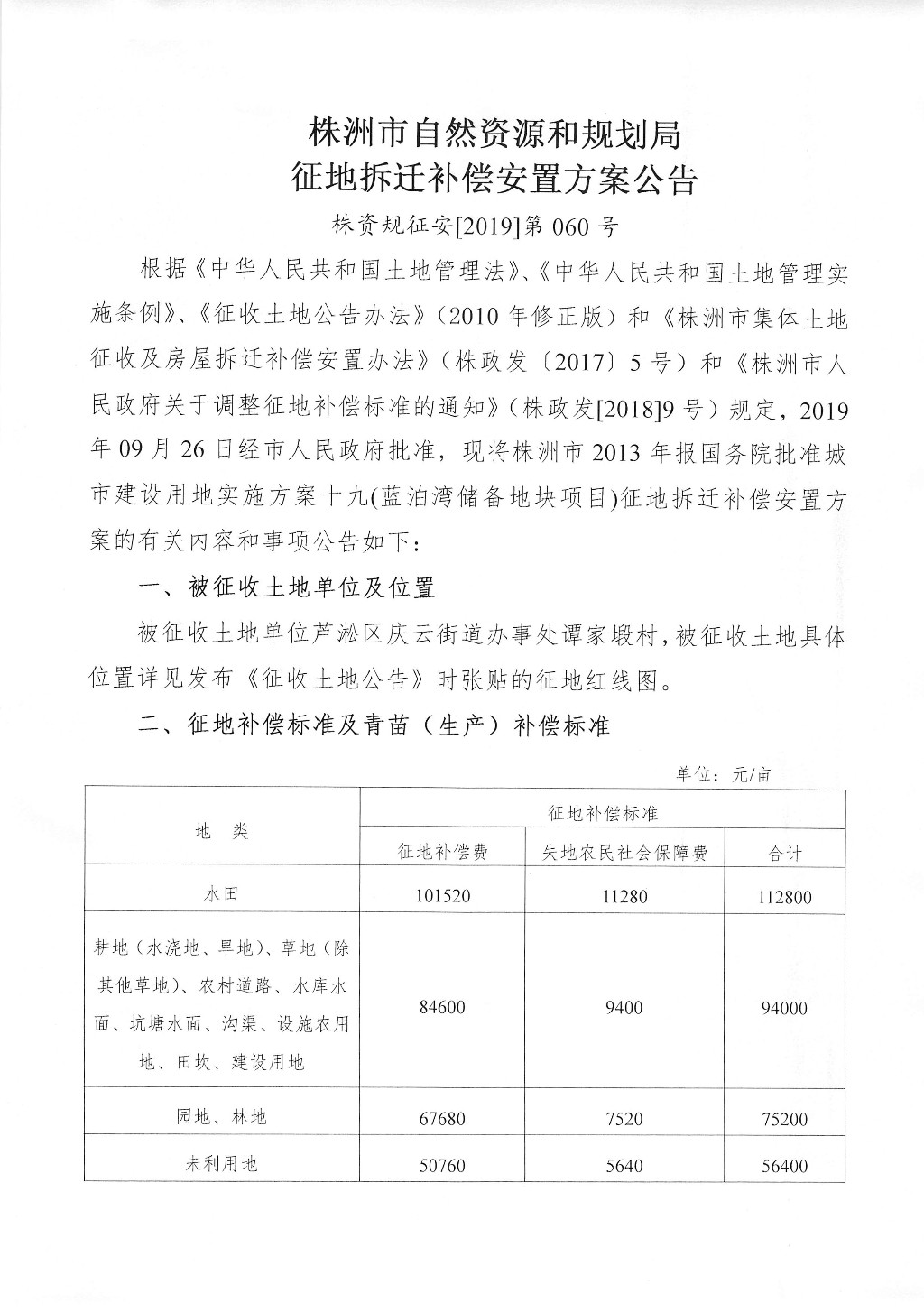 征地拆迁补偿安置方案公告--蓝泊湾储备地块项目