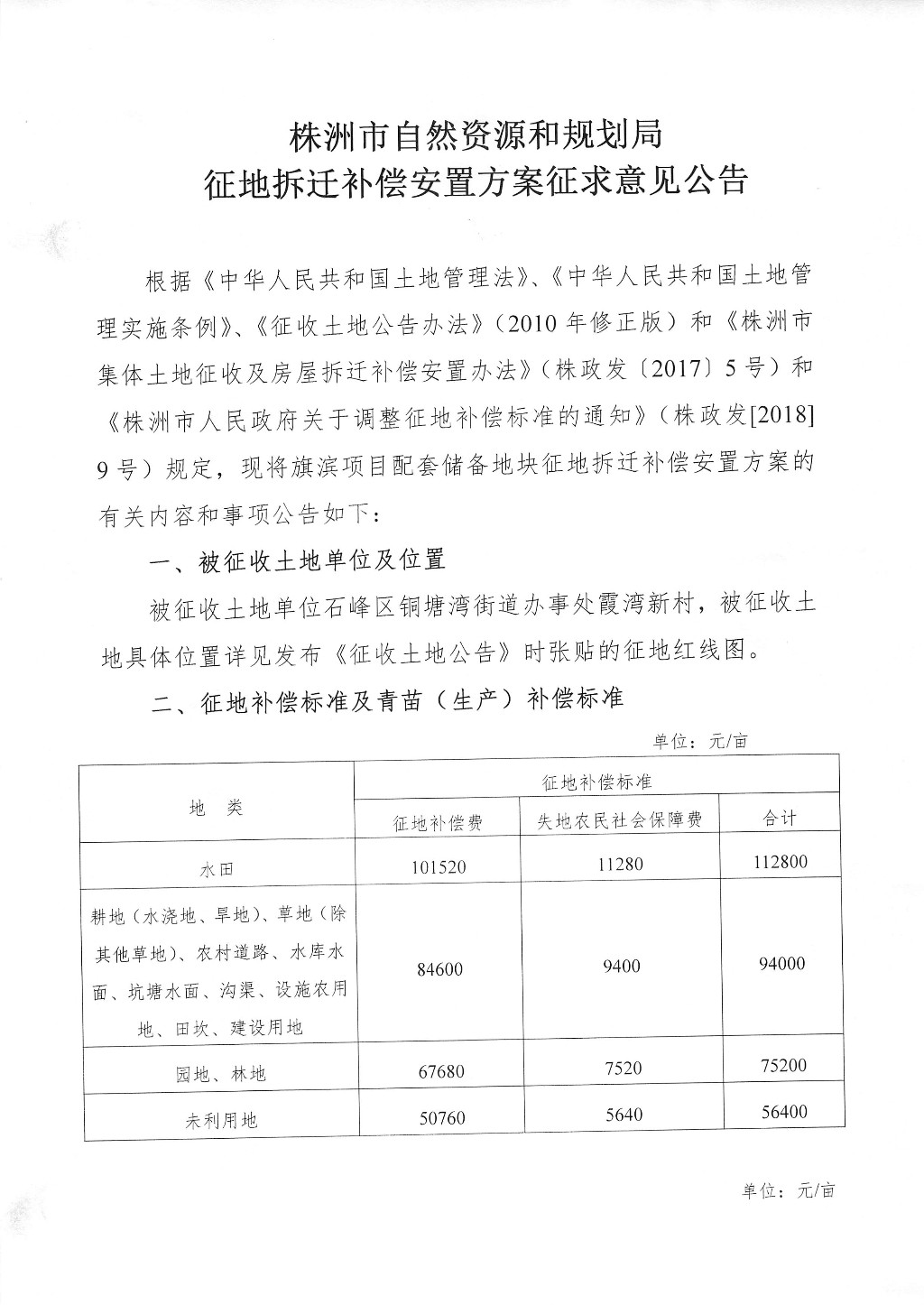 征地拆迁补偿安置方案征求意见公告--旗滨项目配套储备地块