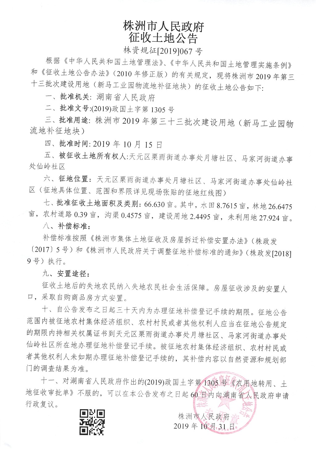 征收土地公告--新马工业园物流地补征地块