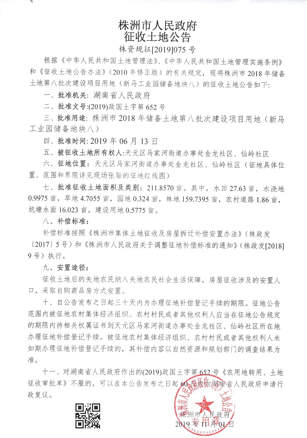 征收土地公告--新马工业园储备地块八