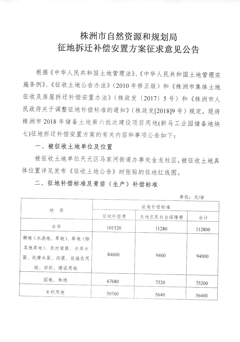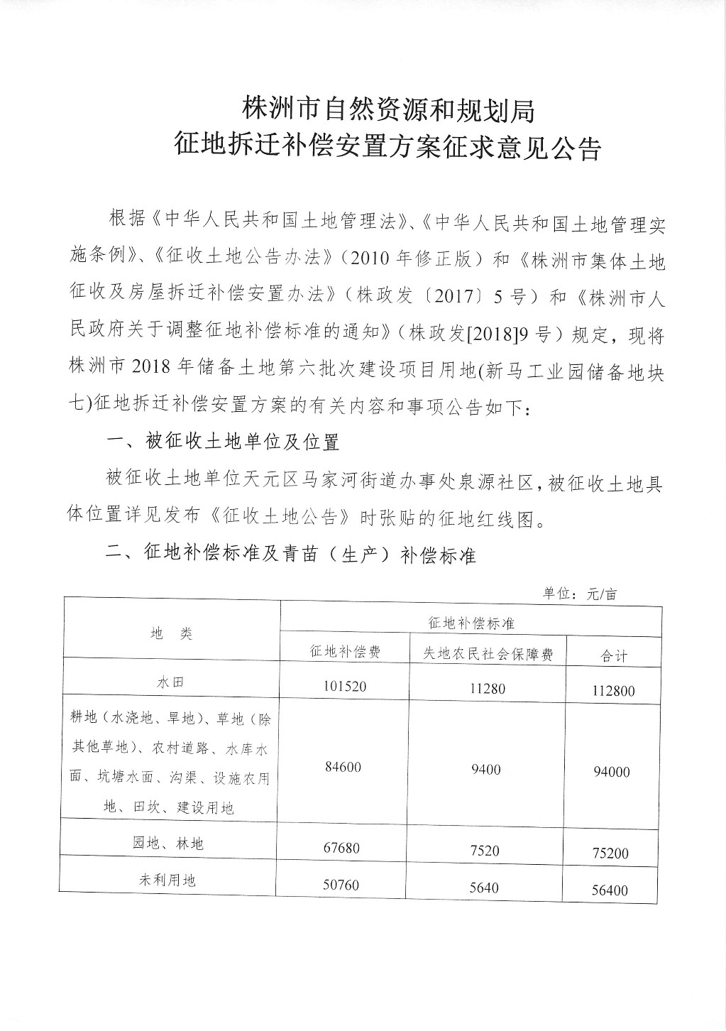 征地拆迁补偿安置方案征求意见公告--新马工业园储备地块七