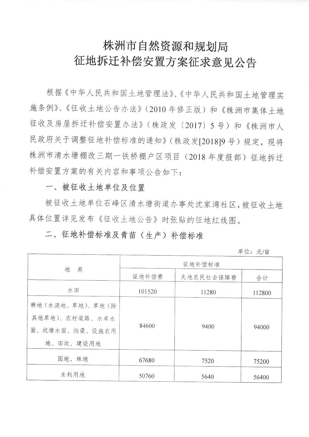 征地拆迁补偿安置方案征求意见公告--株洲市清水塘棚改三期--铁桥棚户区项目(2018年度报部)