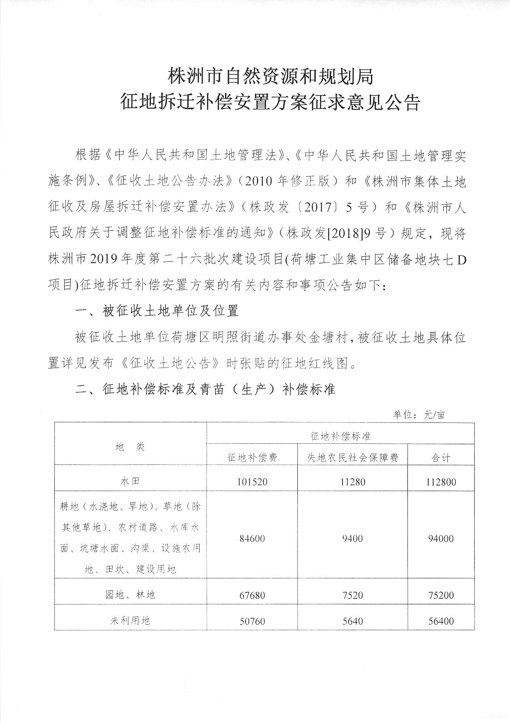 征地拆迁补偿安置方案征求意见公告--荷塘工业集中区储备地块七D项目