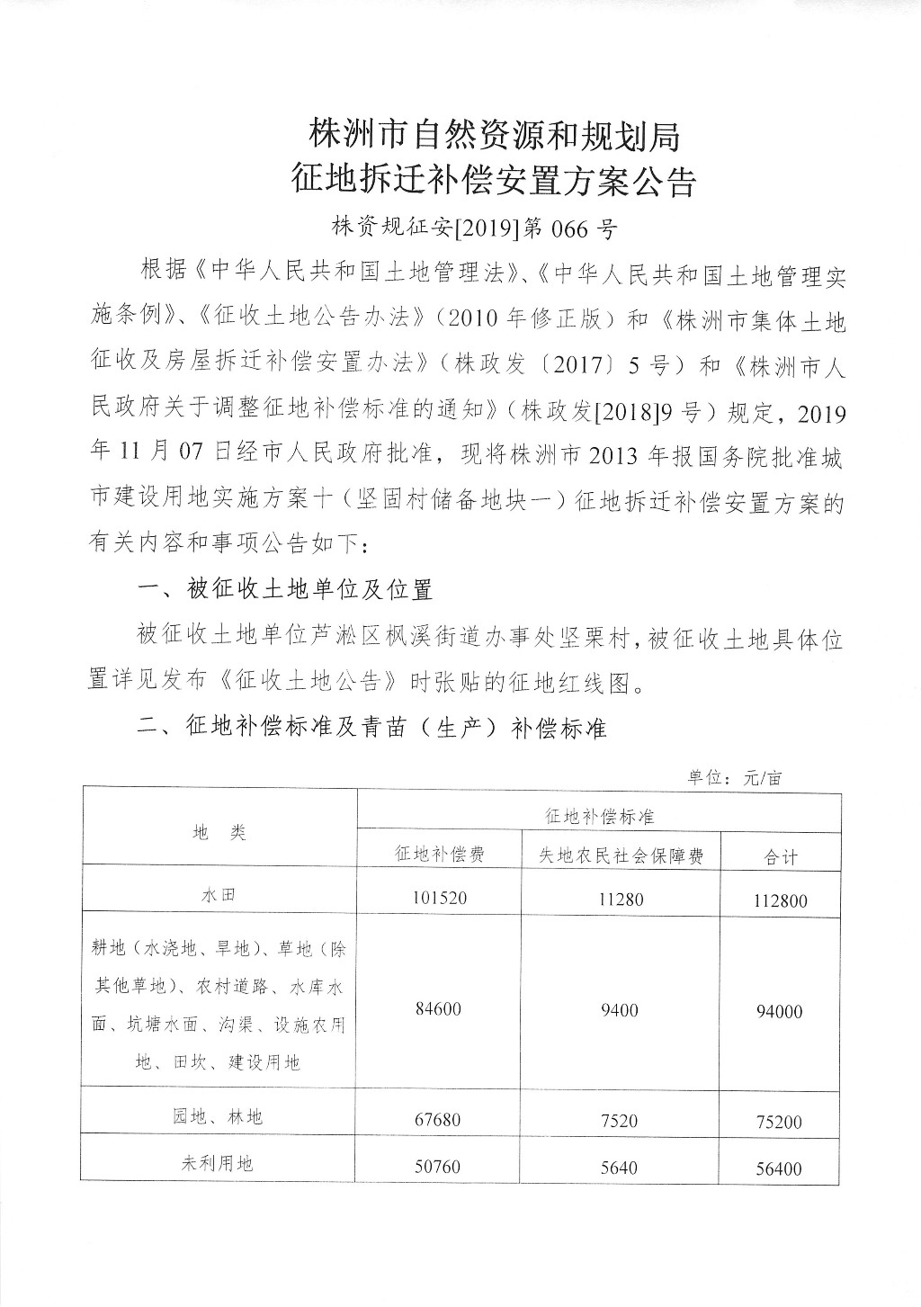 征地拆迁补偿安置方案公告--坚固村储备地块