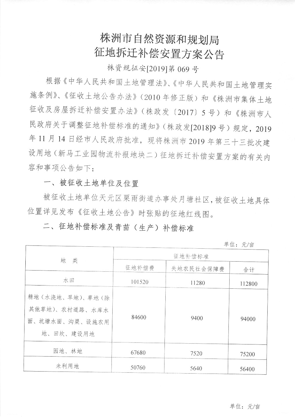 征地拆迁补偿安置方案公告--新马工业园物流补报地块二