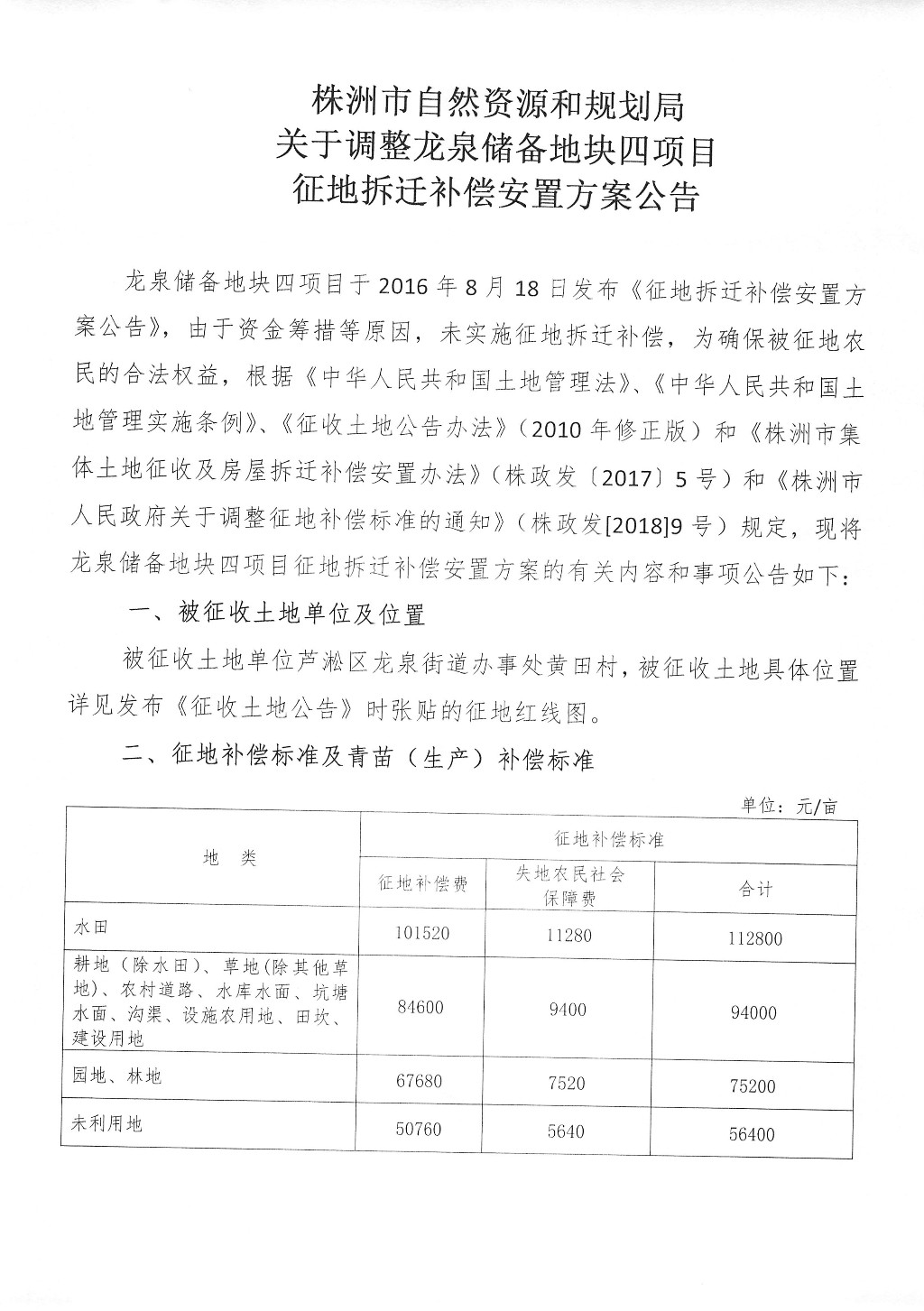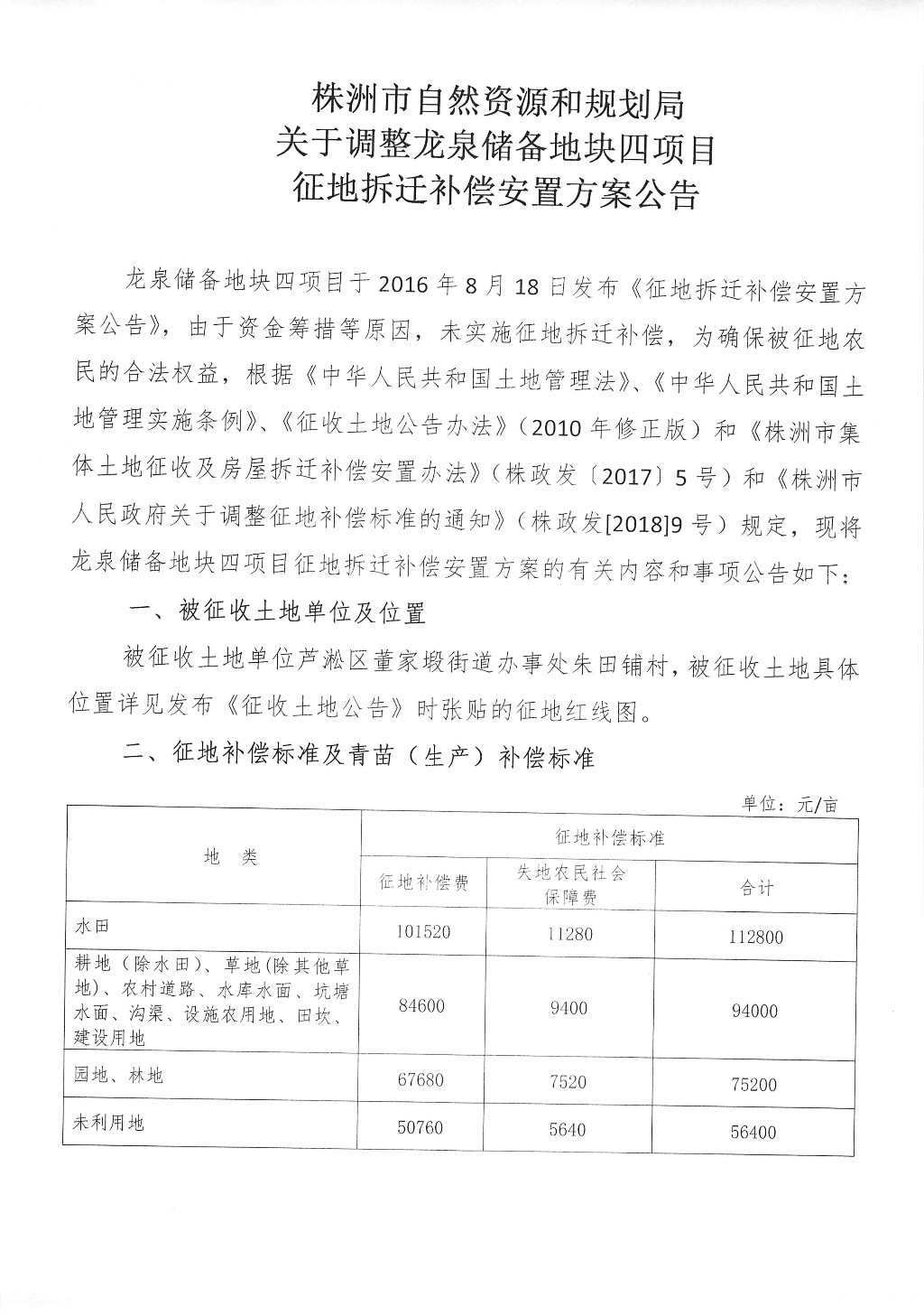 关于调整龙泉储备地块四征地拆迁补偿安置方案公告