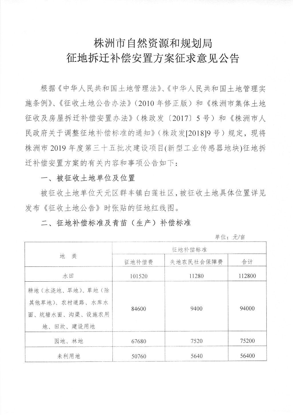 征地拆迁补偿安置方案征求意见公告--新型工业传感器地块