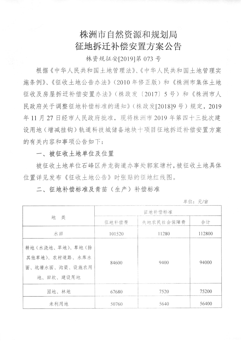 征地拆迁补偿安置方案公告--轨道科技城储备地块十项目