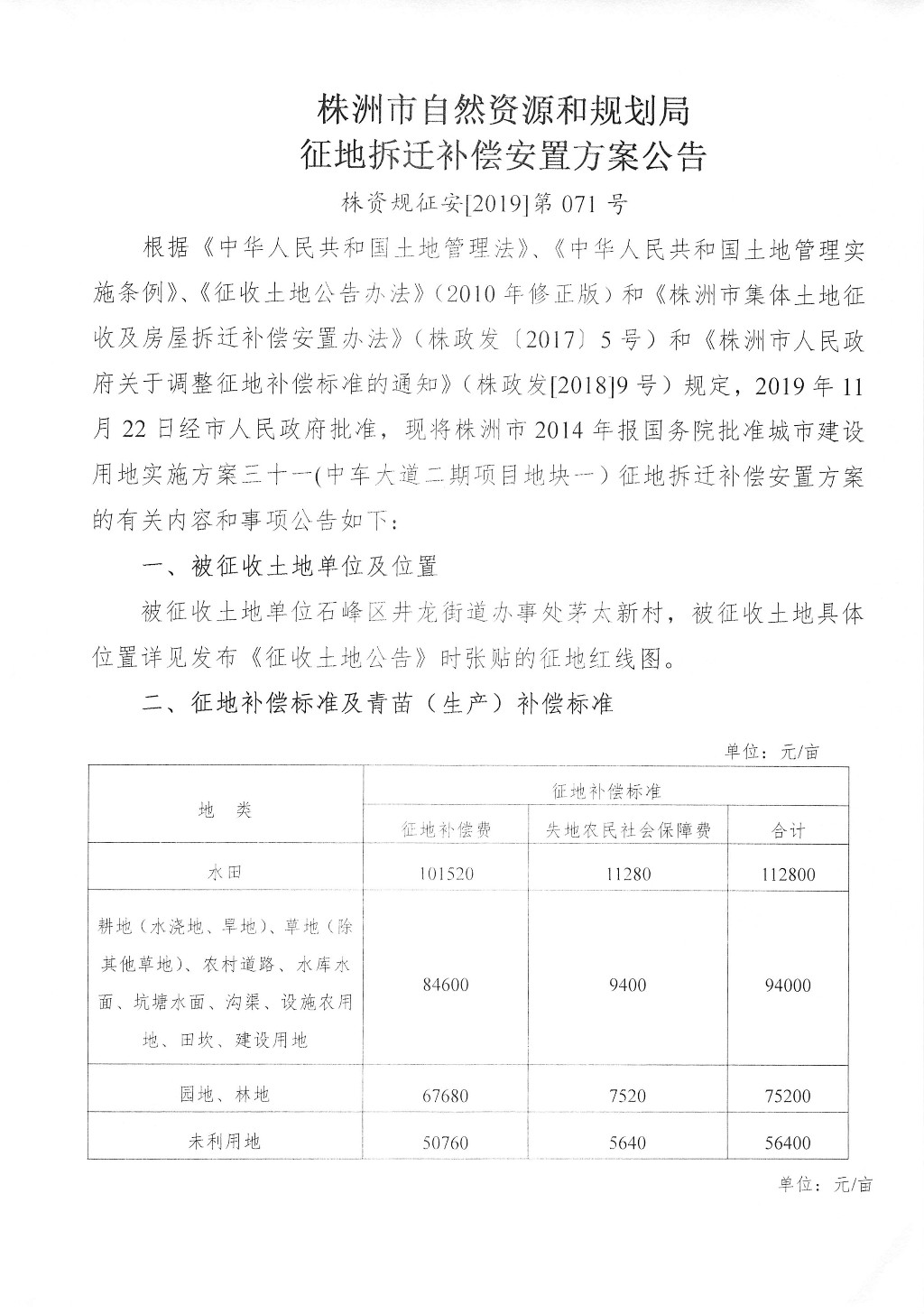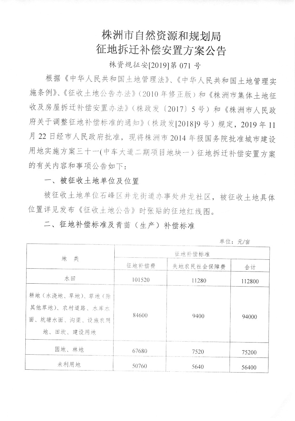 征地拆迁补偿安置方案公告--中车大道二期项目地块一