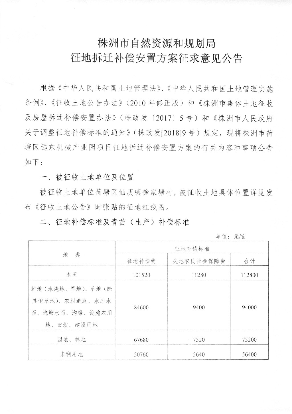 征地拆迁补偿安置方案征求意见公告--株洲市荷塘区远东机械产业园项目