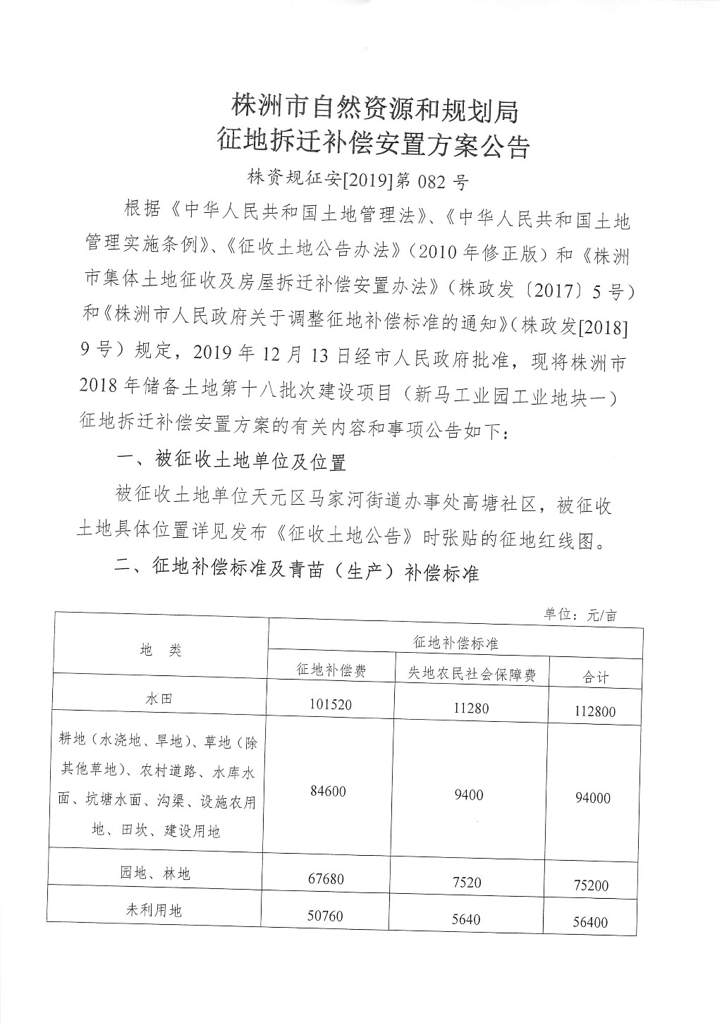 征地拆迁补偿安置方案公告--新马工业园工业地块一