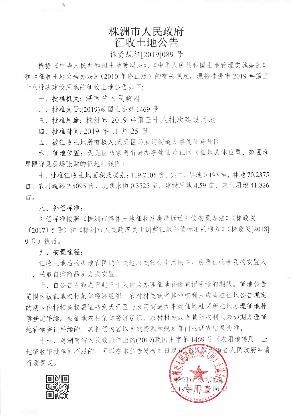 征收土地公告--株洲市2019年第三十八批次建设用地(仙岭储备地块一)