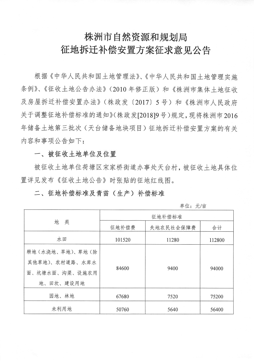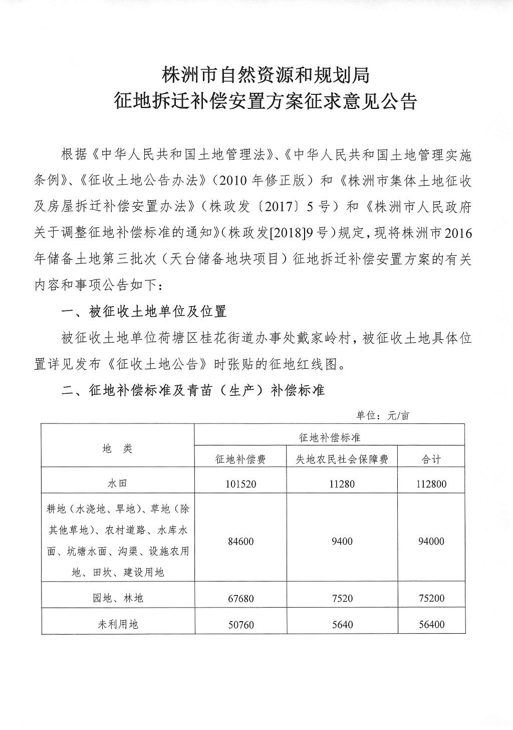 征地拆迁补偿安置方案意见公告--天台储备地块项目