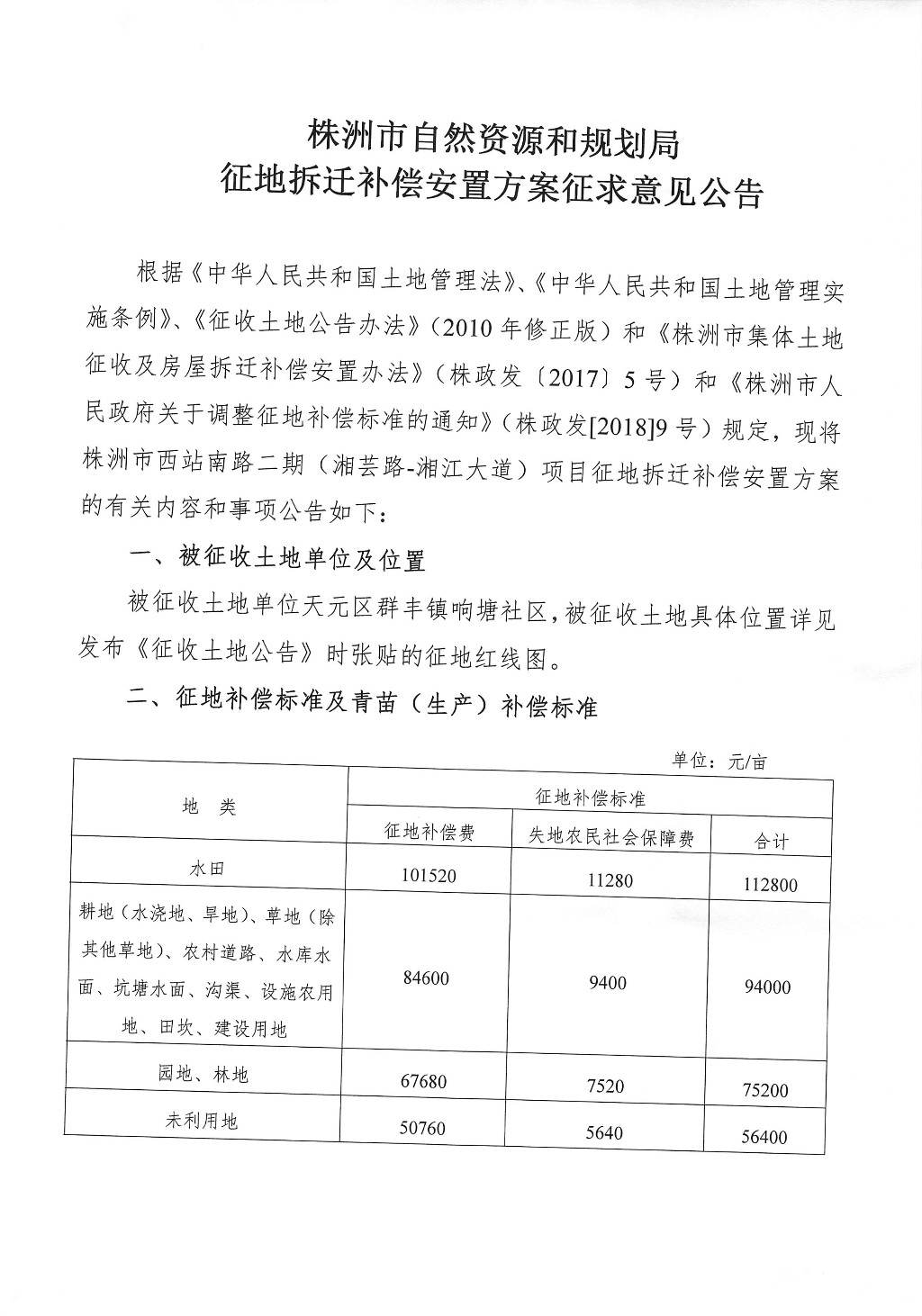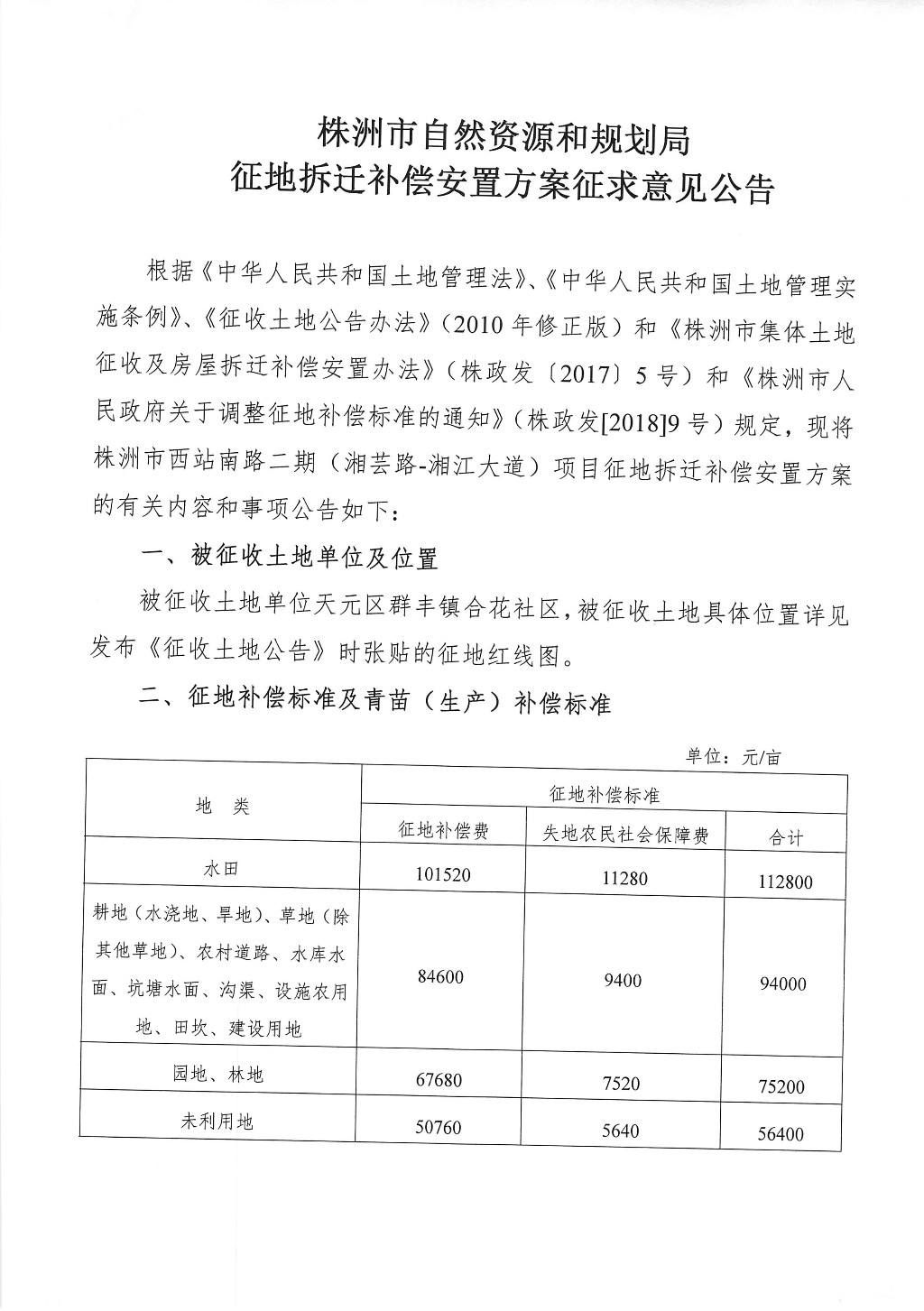征地拆迁补偿安置方案征求意见公告--株洲市西站南路二期(湘芸路--湘江大道)项目
