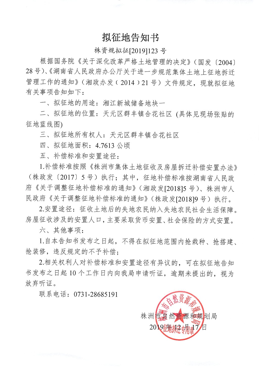 拟征地告知书--湘江新城储备地块一