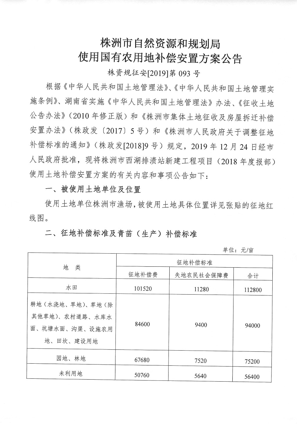 使用国有农用地补偿安置方案公告--株洲市西湖排渍站新建项目