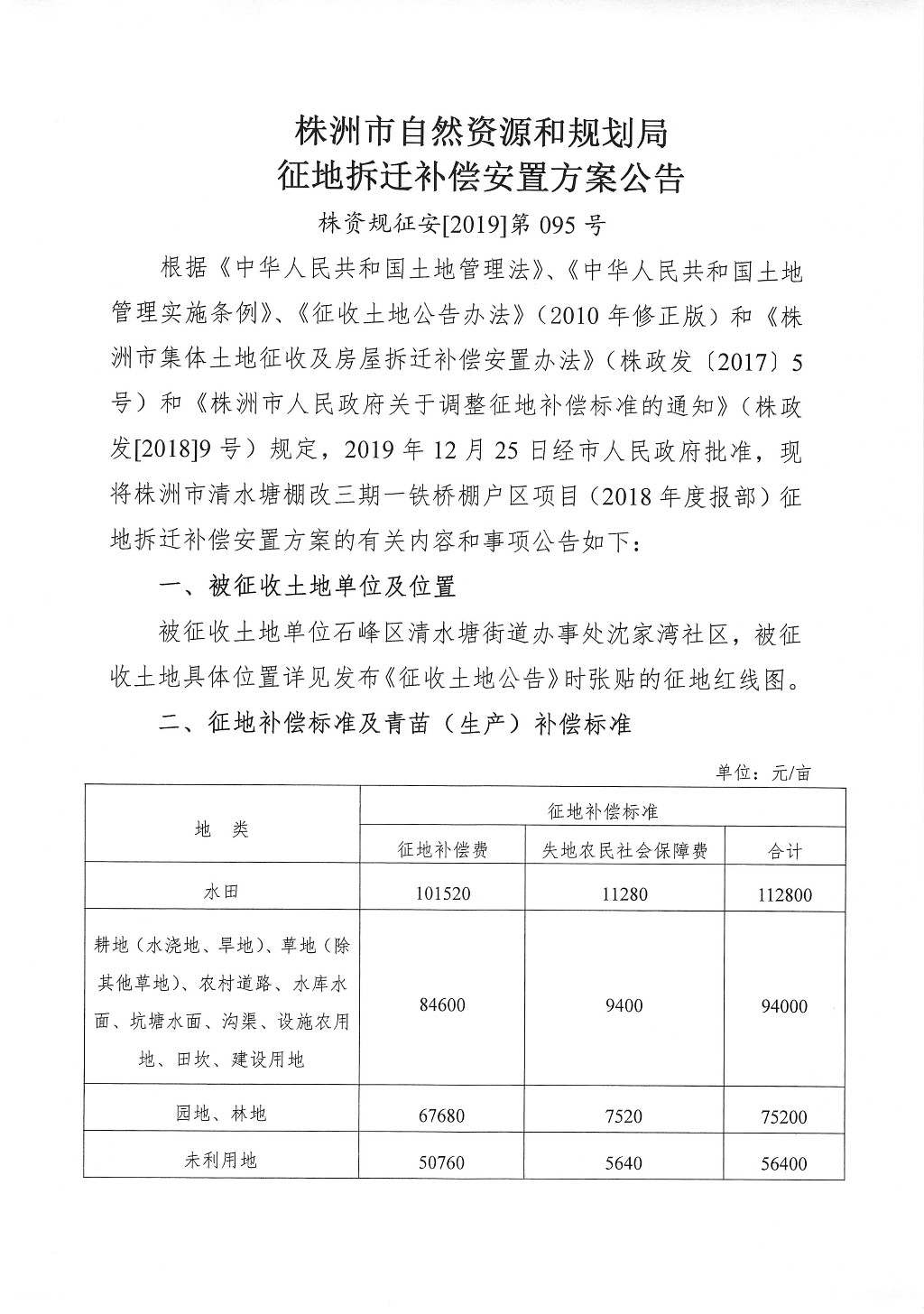 征地拆迁补偿安置方案公告--株洲市清水塘三期--铁桥棚户区项目(2018年度报部)