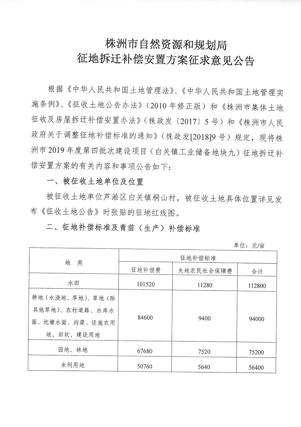 征地拆迁补偿安置方案征求意见公告--白关镇工业储备地块九