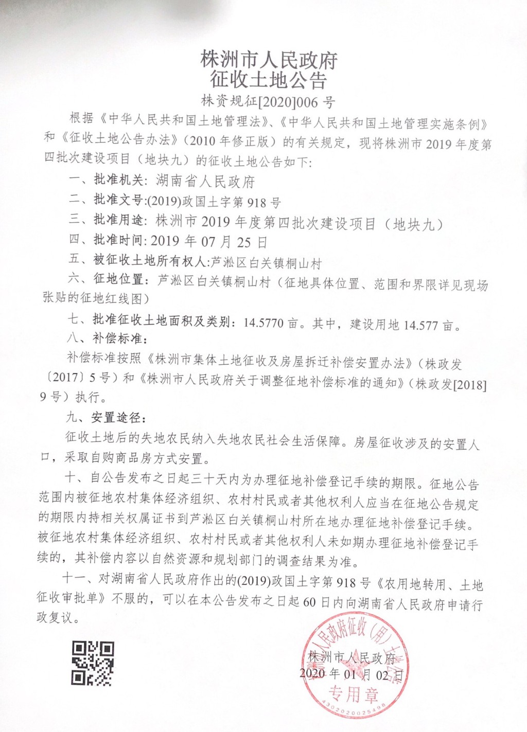 征收土地公告--白关镇工业储备地块九