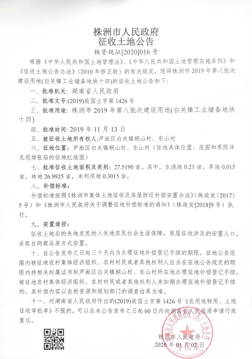 征收土地公告--白关镇工业储备地块十四