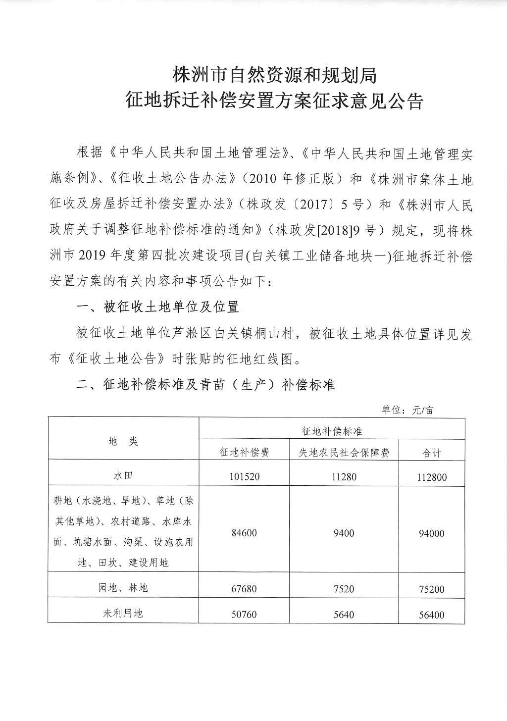 征地拆迁补偿安置方案征求意见公告--白关镇工业储备地块一