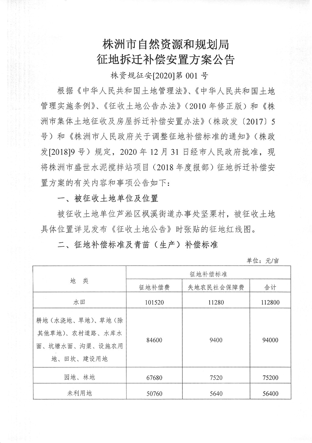 征地拆迁补偿安置方案公告--株洲市盛世搅拌站项目