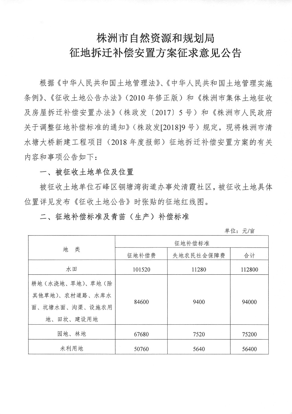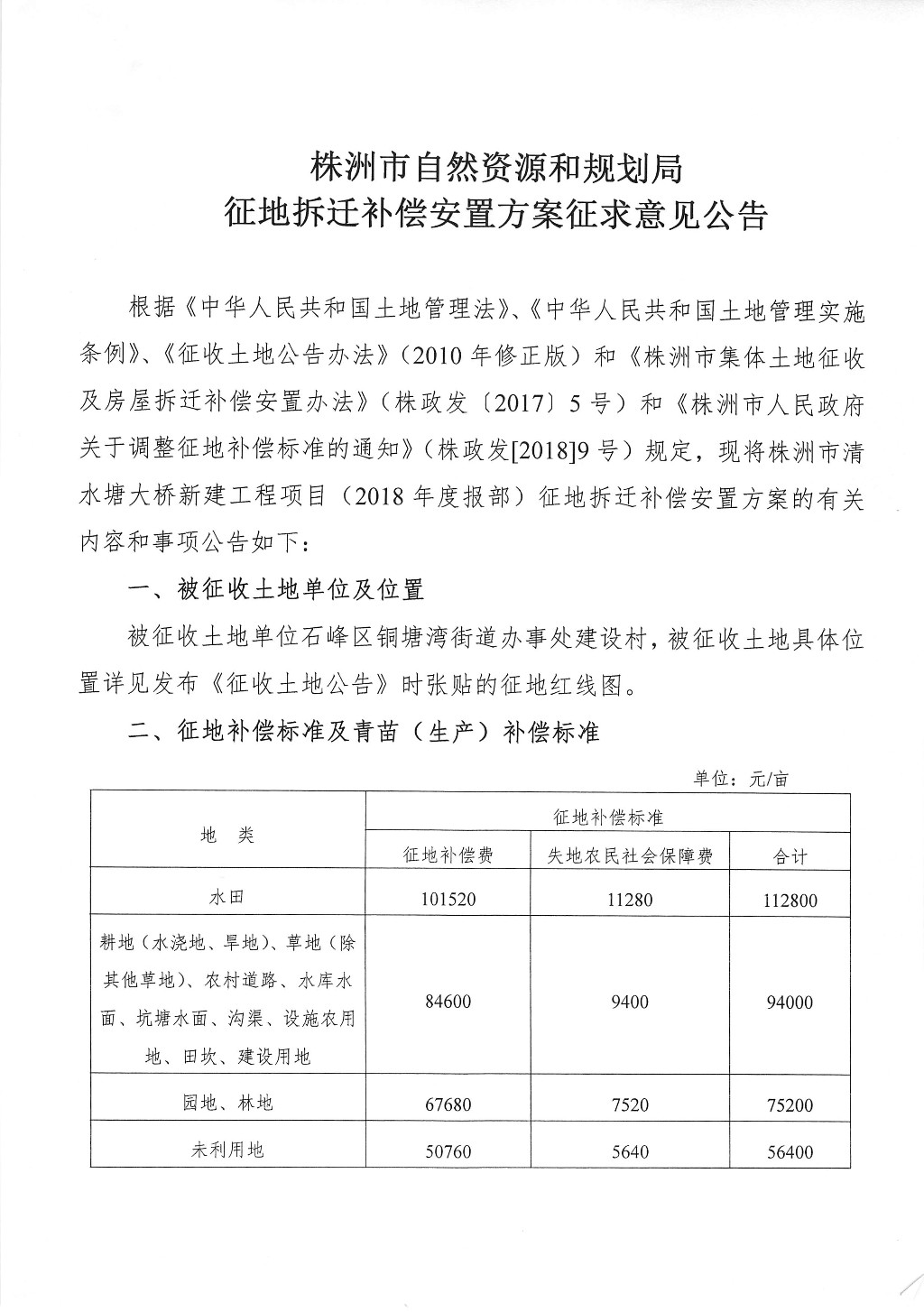 征地拆迁补偿安置方案征求意见公告--株洲市清水塘大桥新建工程项目