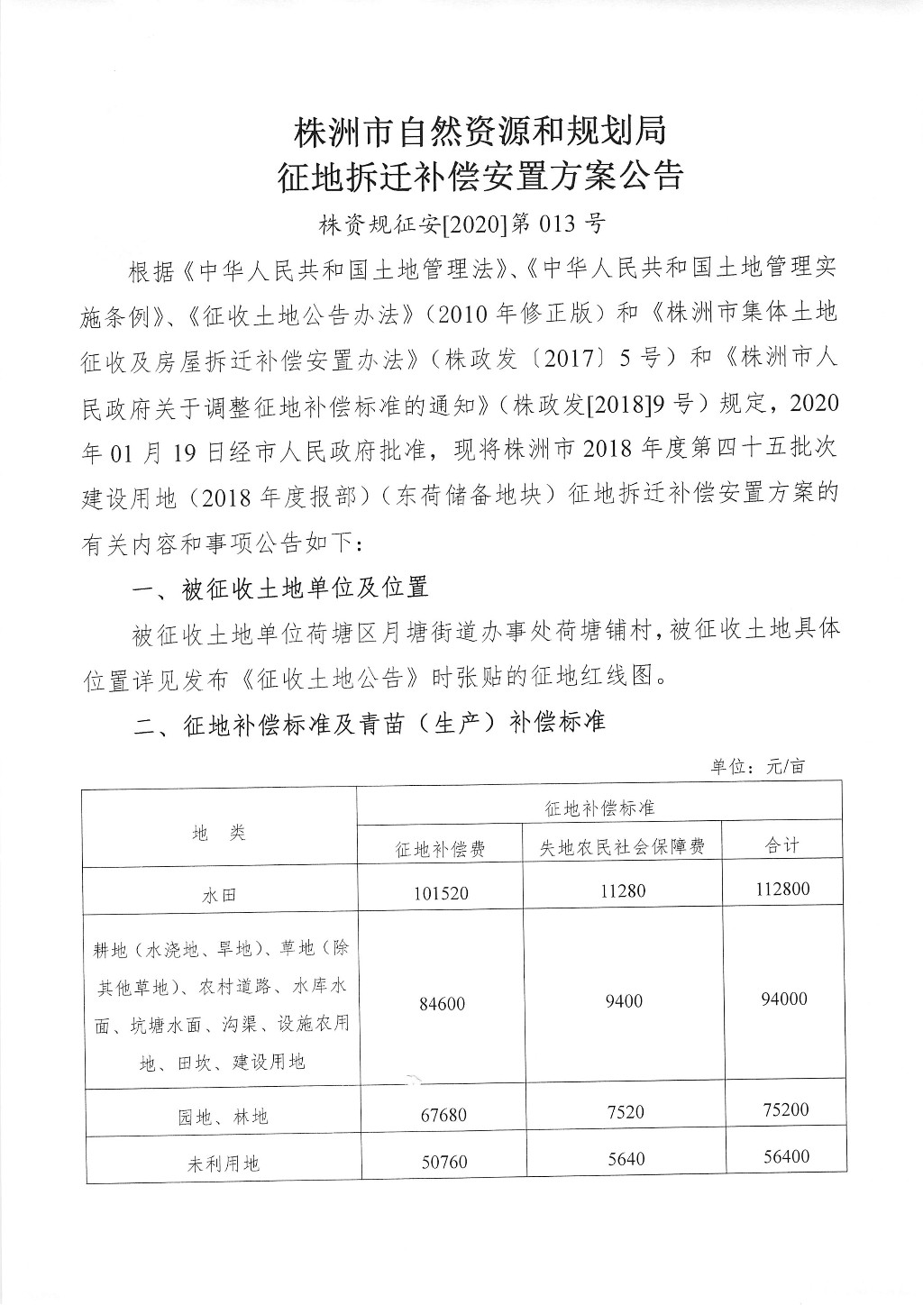 征地拆迁补偿安置方案公告--东荷储备地块项目